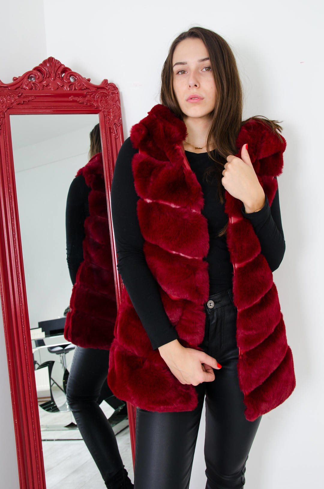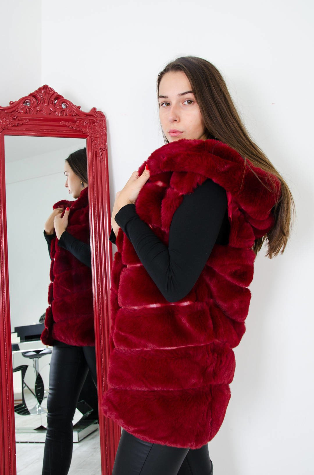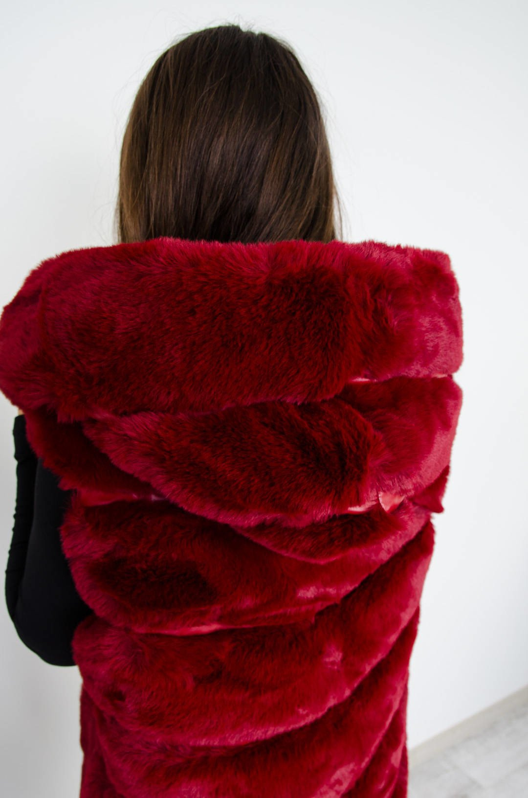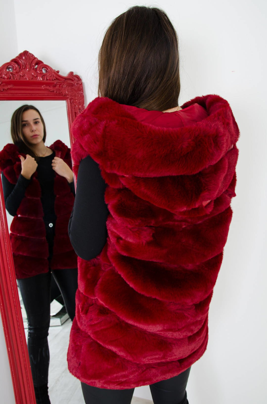 BORDOWA FUTRZANA KAMIZELKA Z KAPTUREM