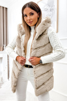 BEŻOWA FUTRZANA KAMIZELKA Z KAPTUREM
