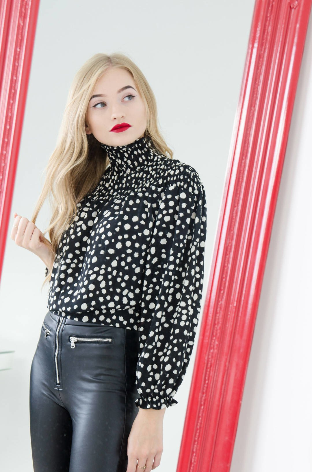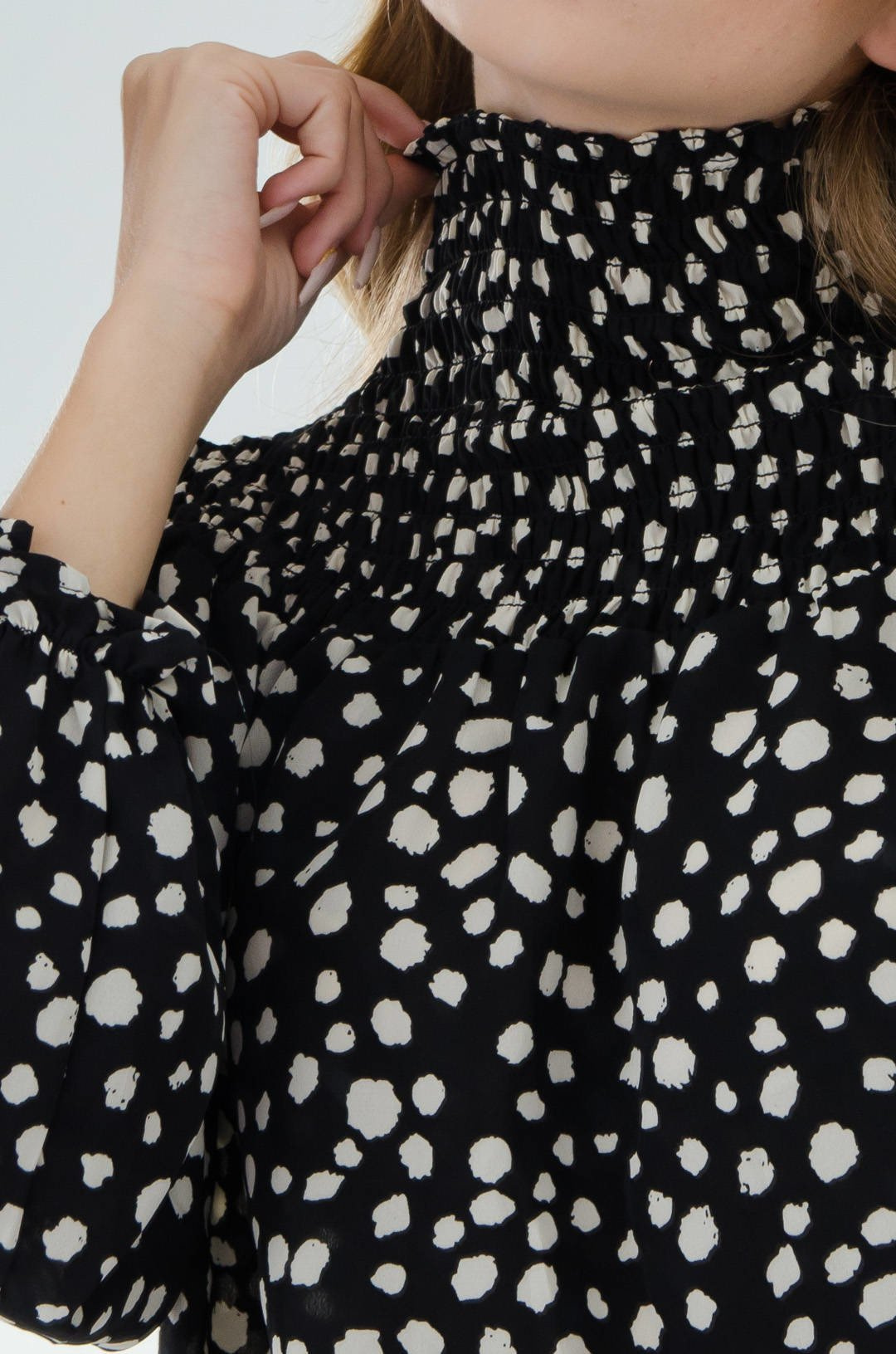CZARNA BLUZKA PÓŁGOLF W ŁATKI WIĄZANA NA PLECACH
