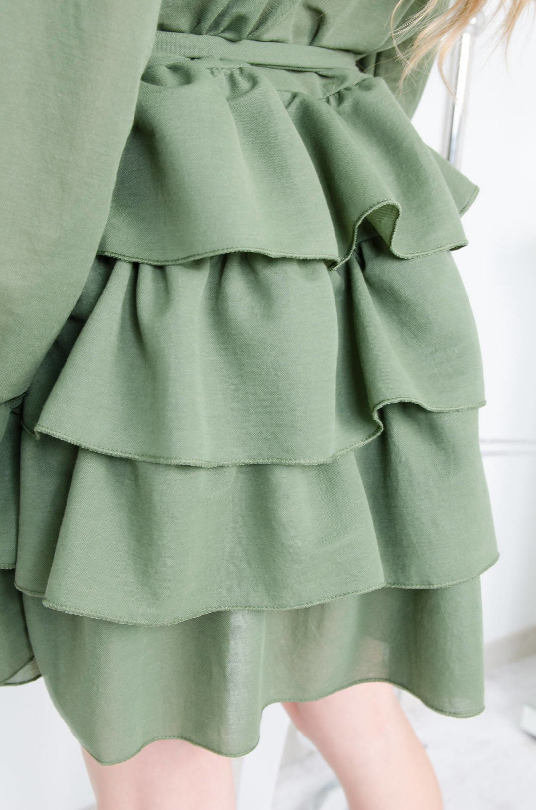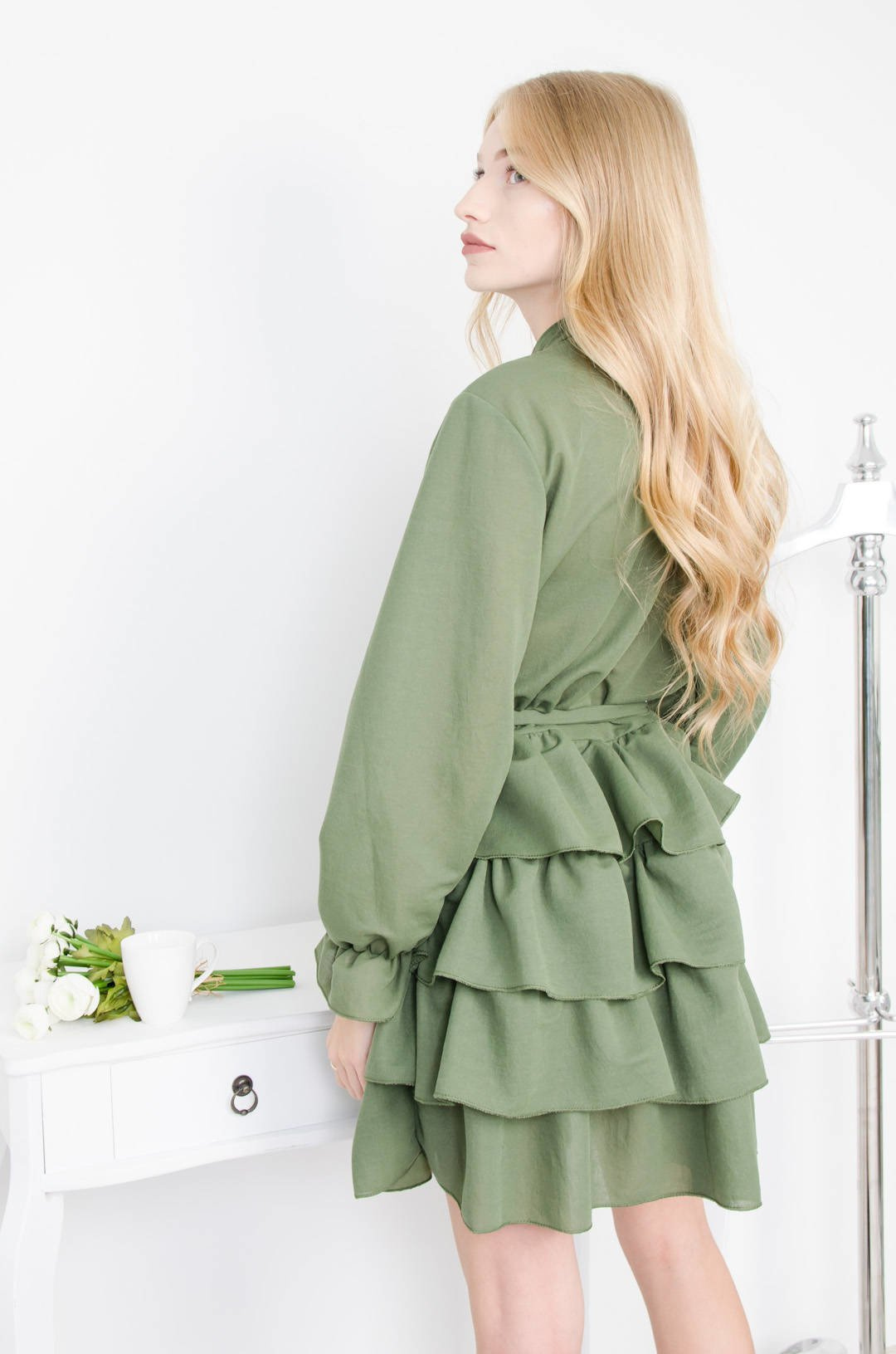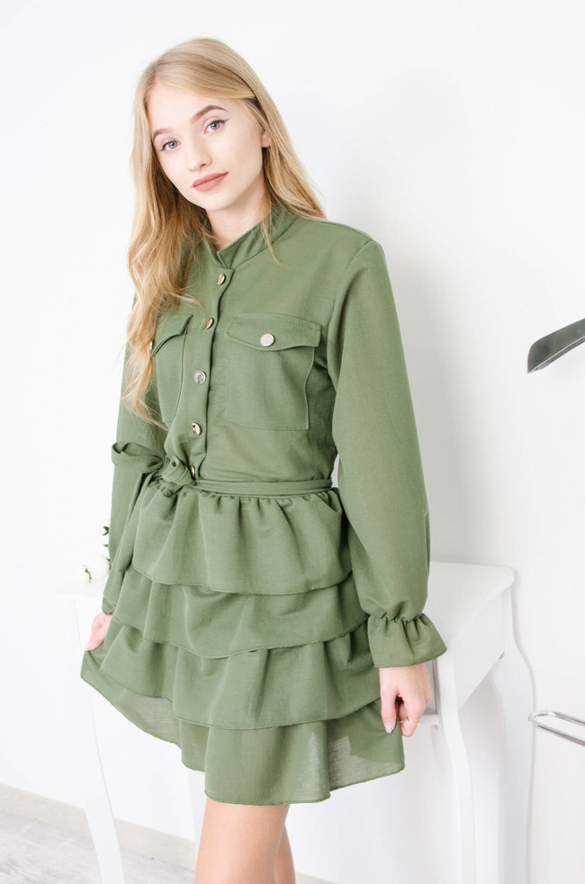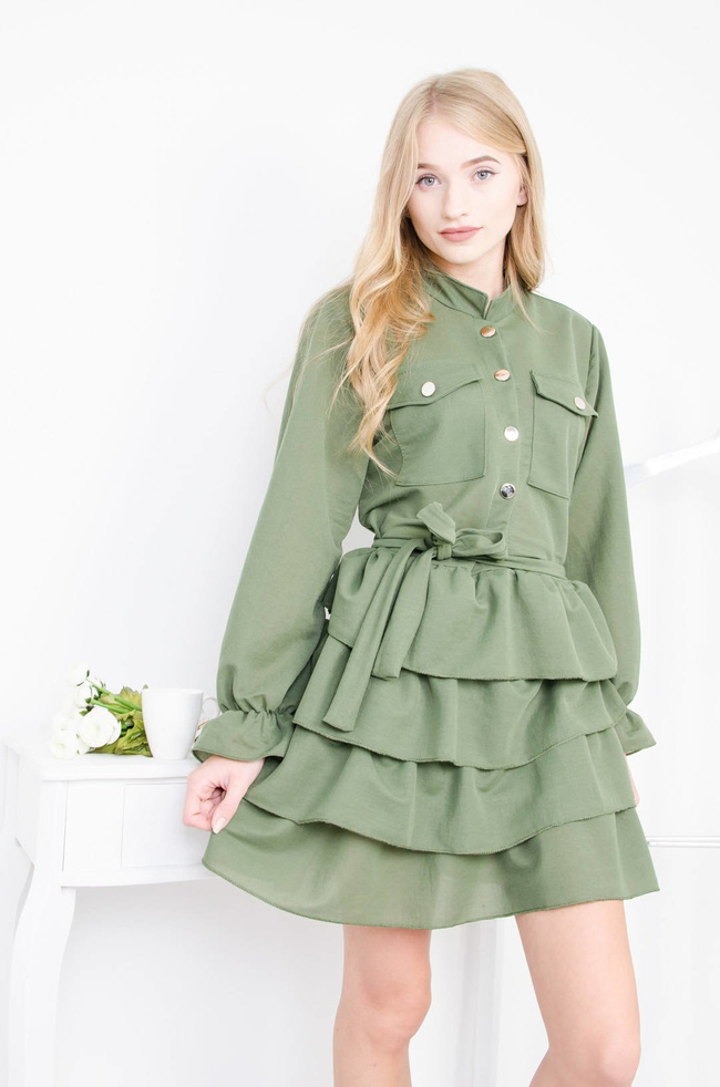 ZIELONA SUKIENKA KOSZULOWA Z FALBANAMI