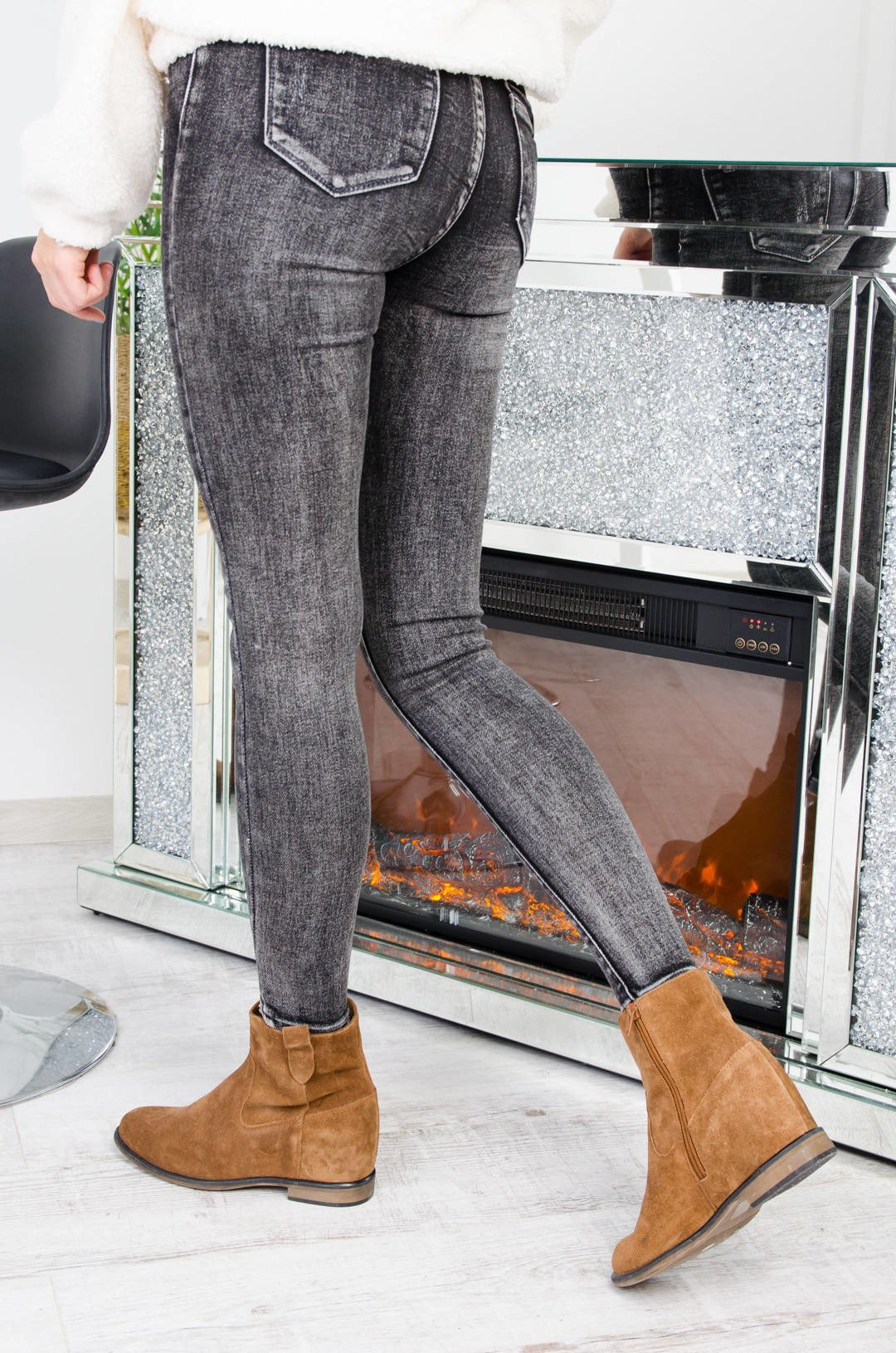 CIEMNO-SZARE SPODNIE JEANOWE Z WYSOKIM STANEM