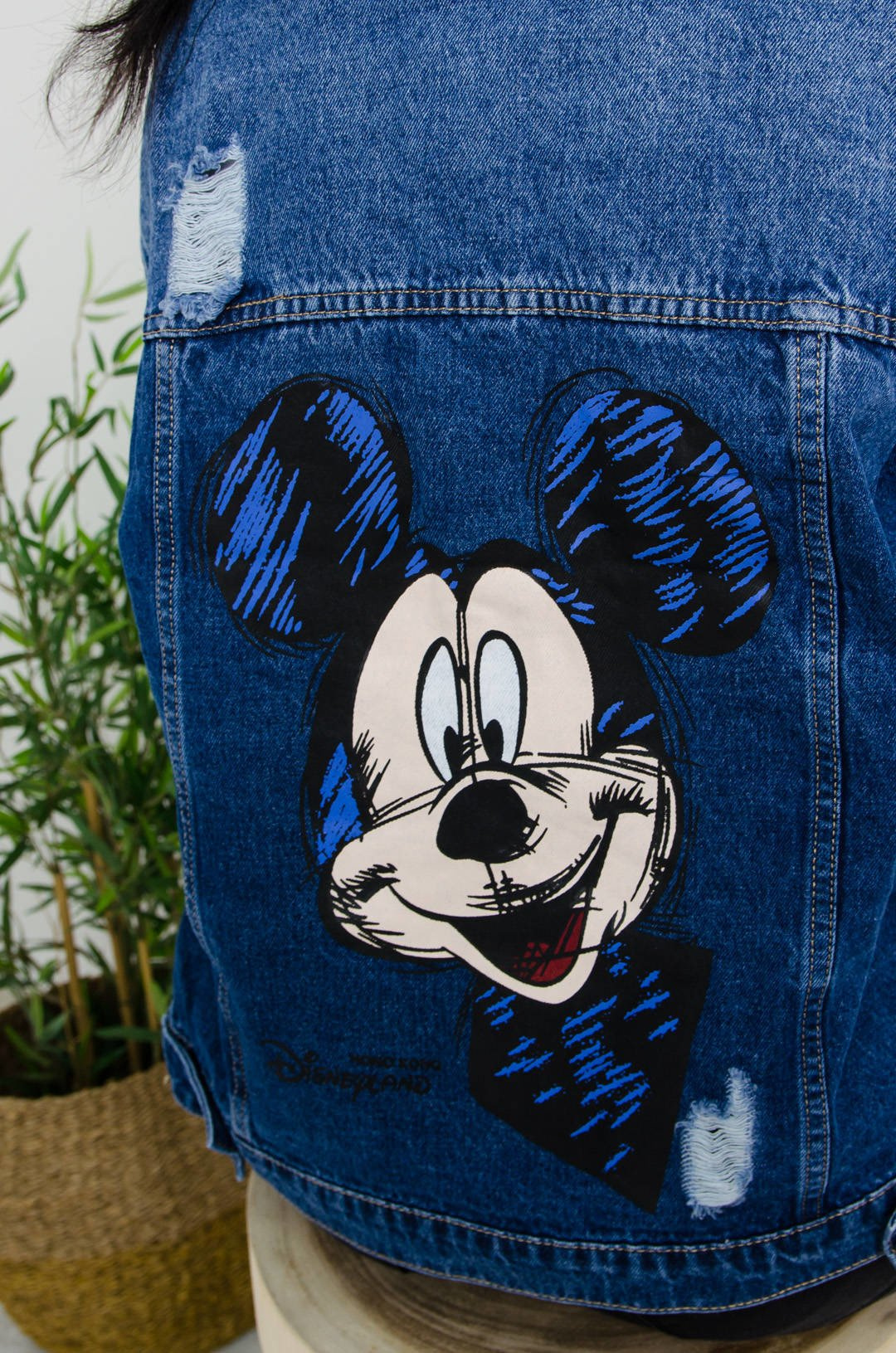 CIEMNA JEANSOWA KURTKA Z APLIKACJĄ NA PLECACH