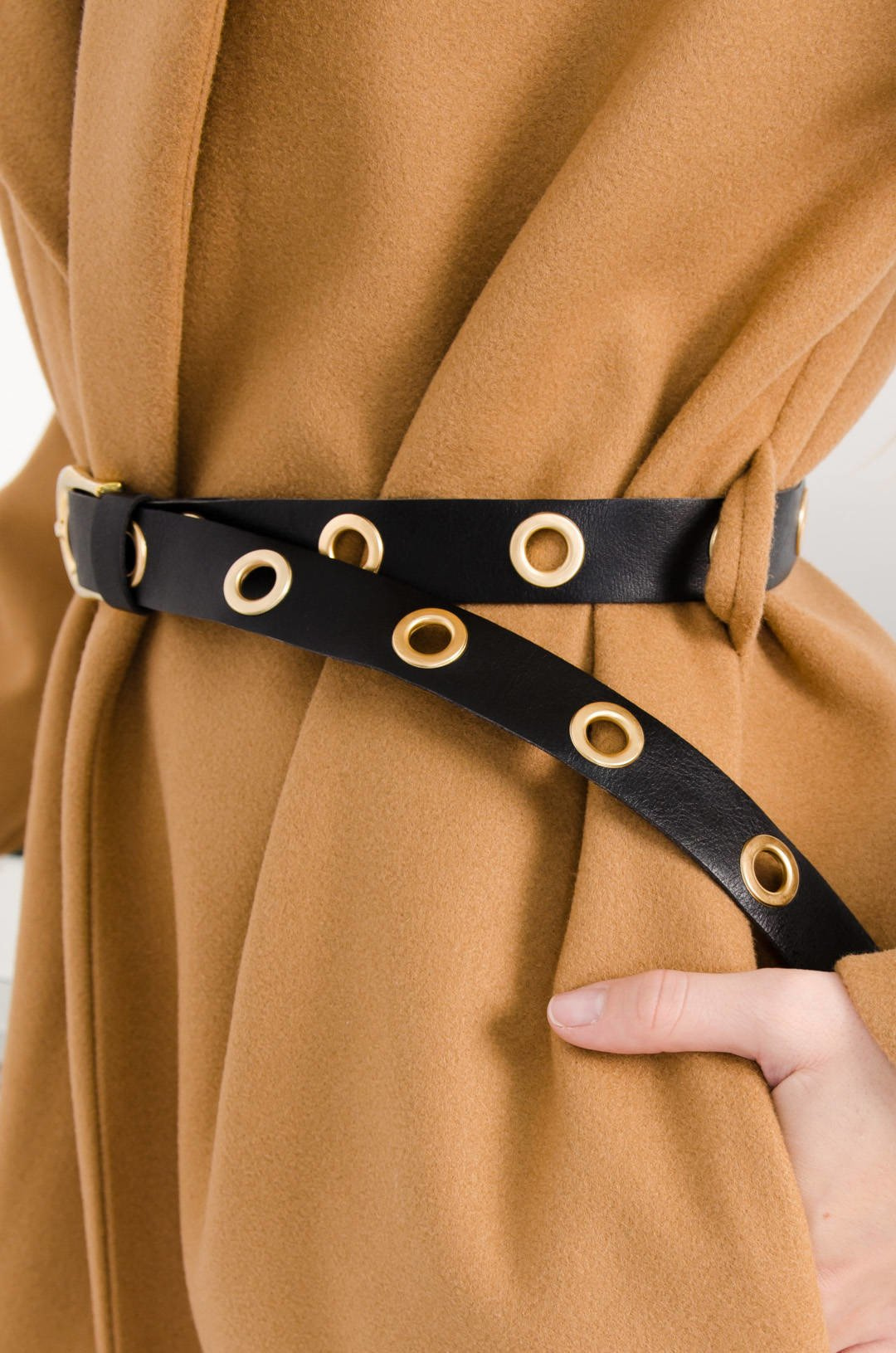 BRĄZOWY DŁUGI PŁASZCZ Z PASKIEM