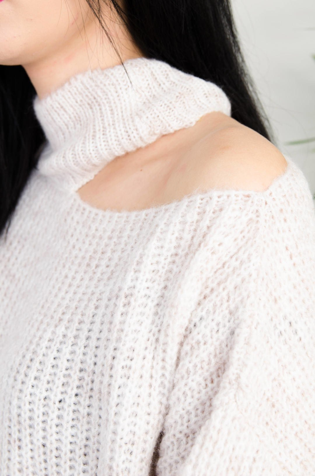 BEŻOWY SWETER OVERSIZE Z PÓŁGOLFEM