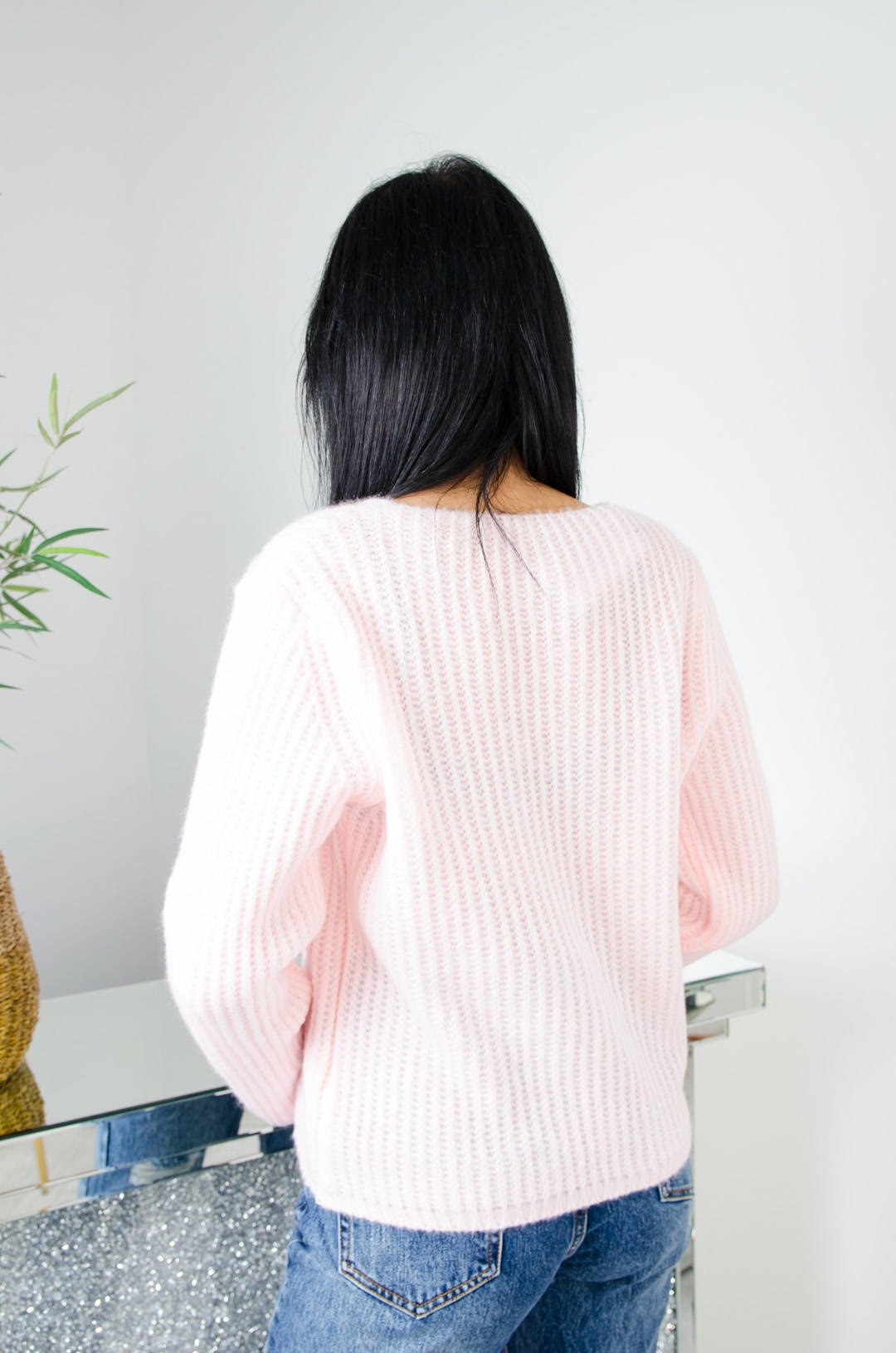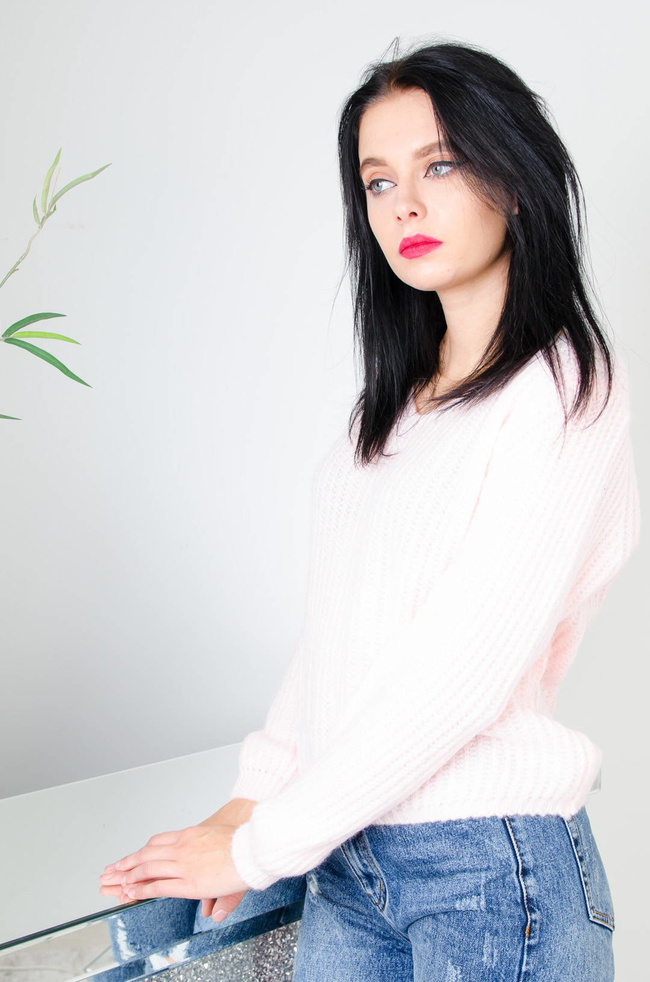 JASNO RÓŻOWY SWETER Z DEKOLTEM W SZPIC