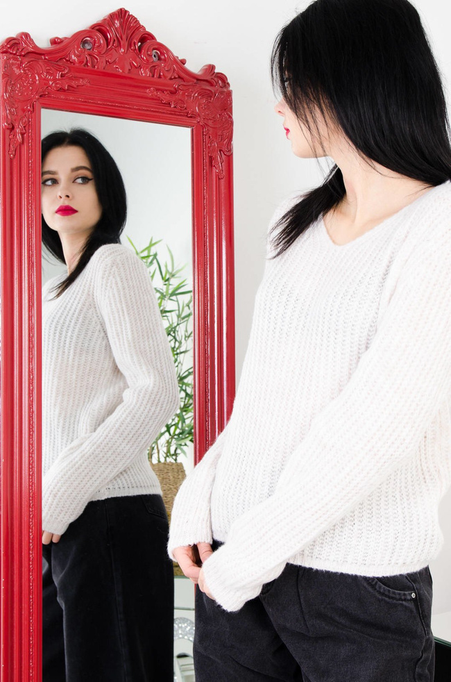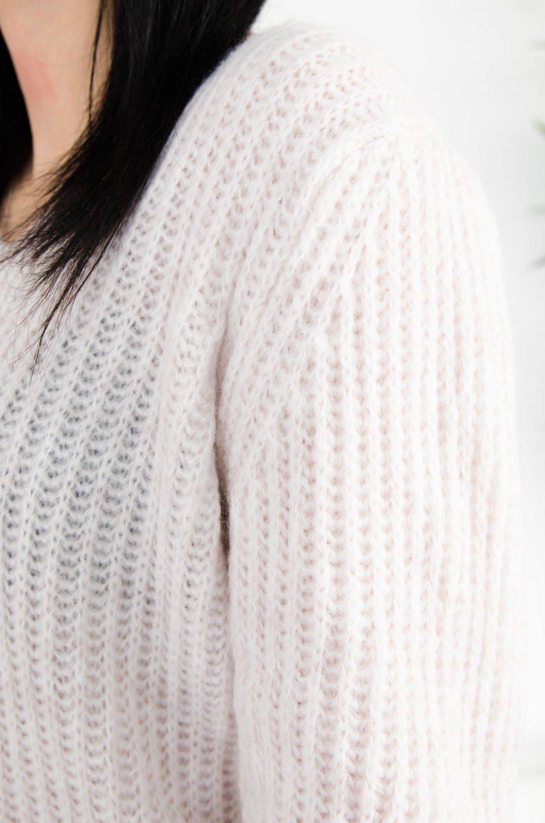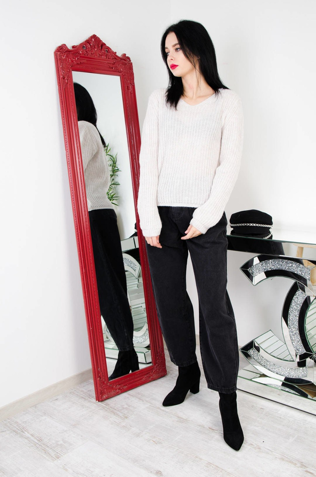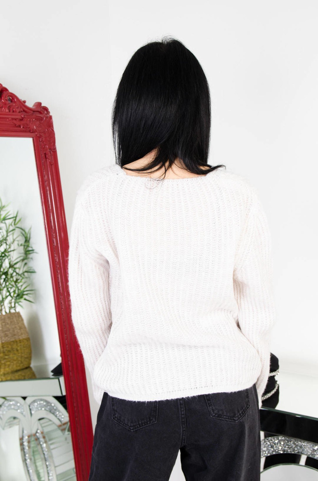 BEŻOWY SWETER Z DEKOLTEM W SZPIC