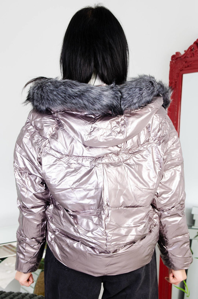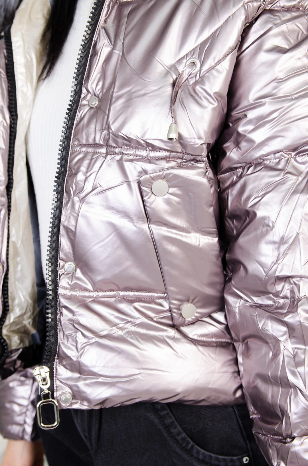 KRÓTKA RÓŻOWA METALICZNA KURTKA Z FUTERKIEM
