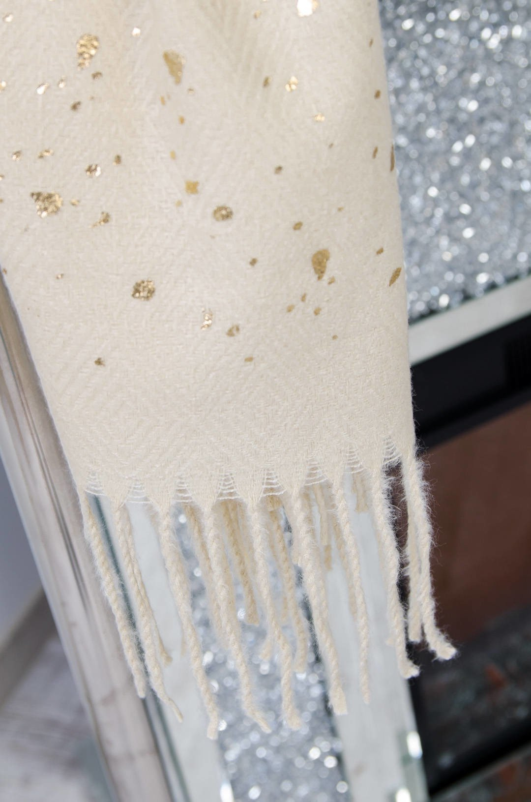 BEŻOWO-ZŁOTY SZAL Z FRĘDZLAMI
