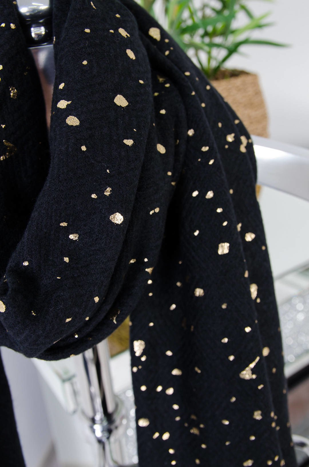 CZARNO-ZŁOTY SZAL Z FRĘDZLAMI