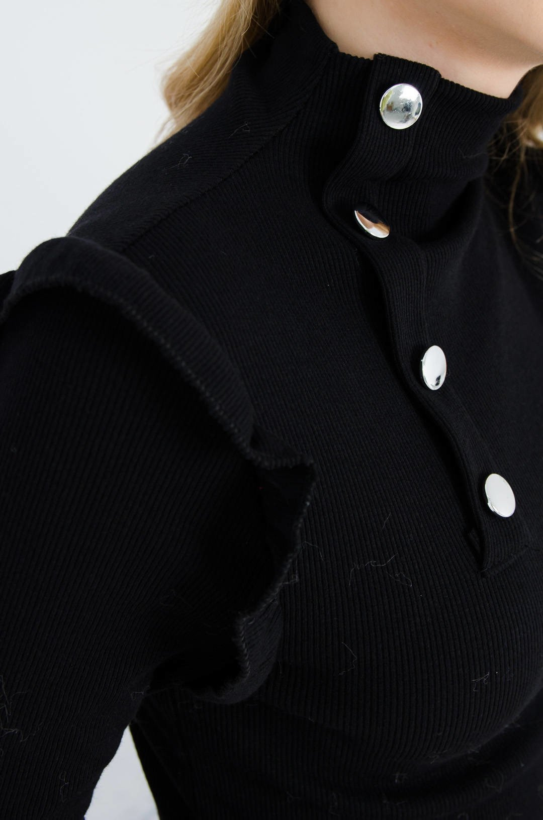 CZARNA BAWEŁNIANA PRĄŻKOWANA SUKIENKA Z PÓŁGOLFEM