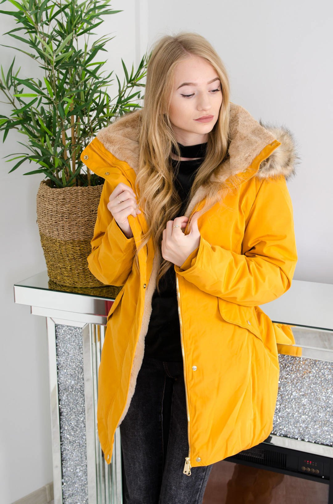 MUSZTARDOWA KURTKA ZIMOWA PARKA NA MISIU