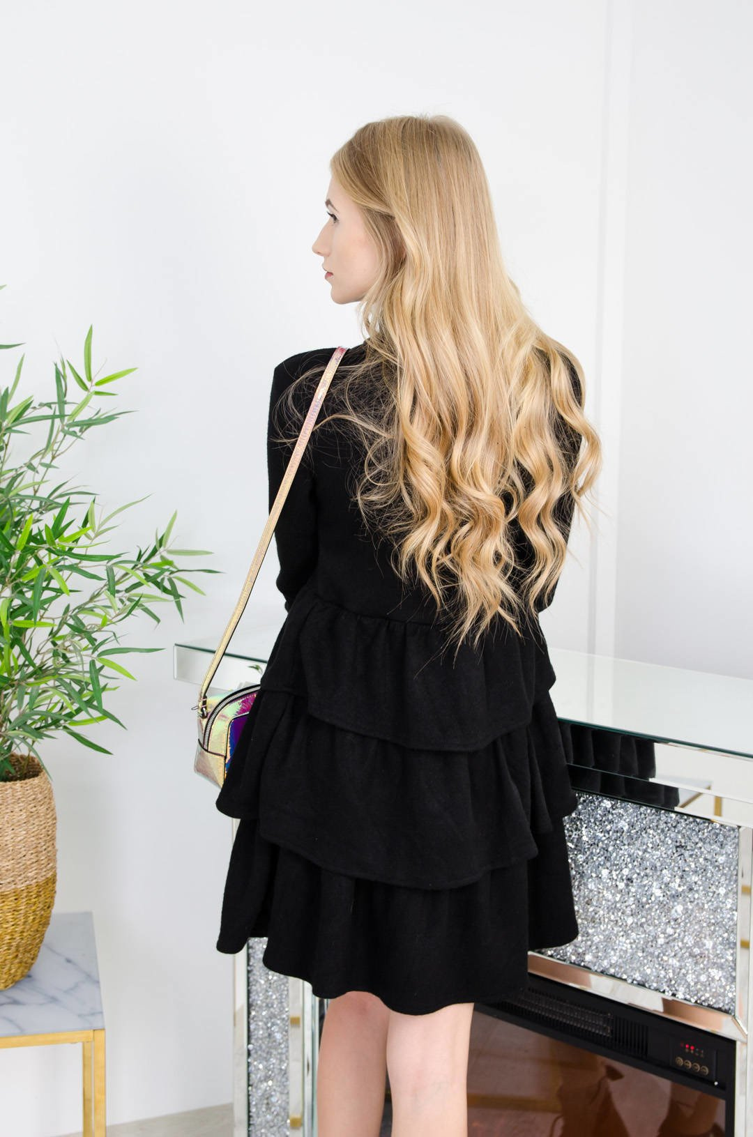 CZARNA ROZKLOSZOWANA SUKIENKA Z FALBANAMI