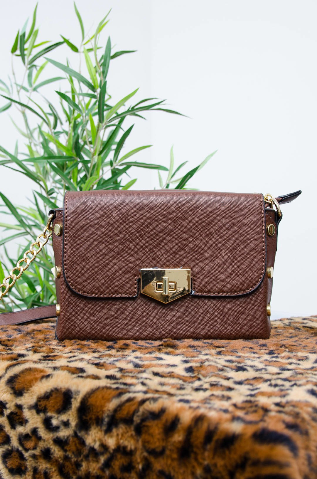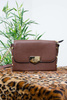CIEMNO BRĄZOWA TOREBKA LISTONOSZKA ZE ZŁOTYMI GUZIKAMI