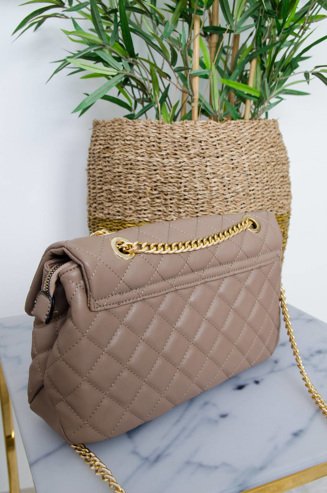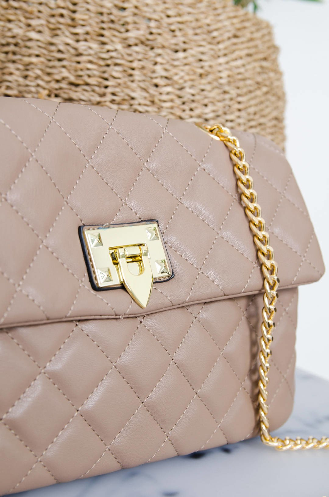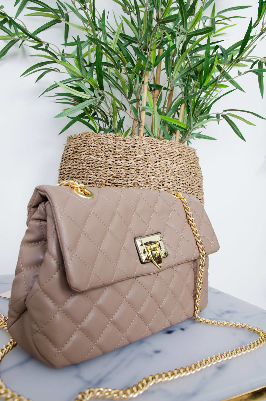 BEŻOWA PIKOWANA CHANELKA NA ZŁOTYM ŁAŃCUSZKU