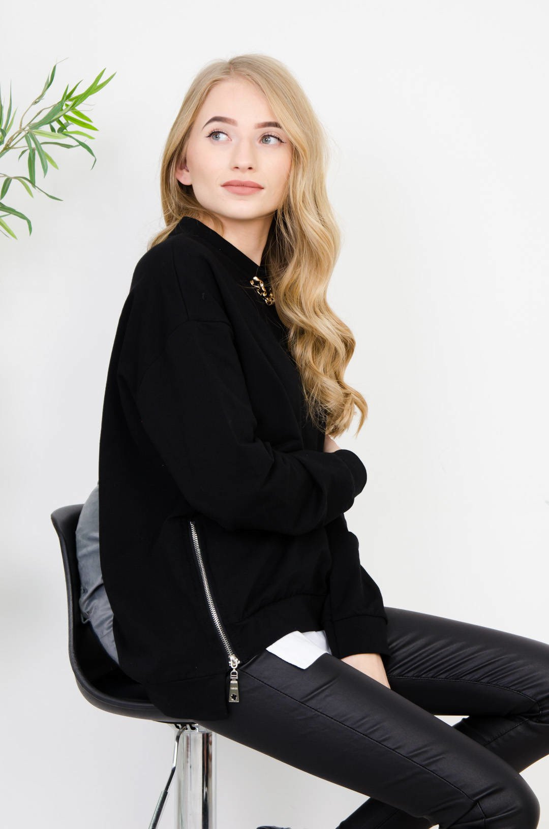 CZARNA BLUZKA Z ŁAŃCUSZKIEM WYKOŃCZONA KOSZULĄ
