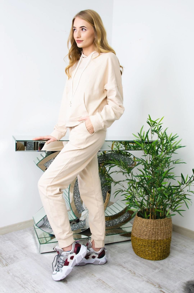 BEŻOWY BAWEŁNIANY KOMPLET DRESOWY J'ADORE