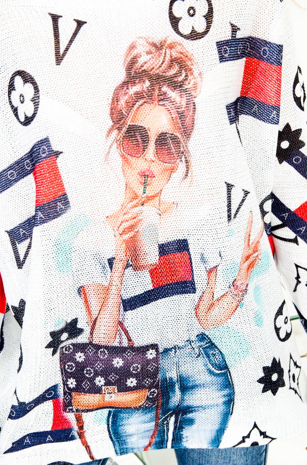 BIAŁA LUŹNA BLUZKA Z MOTYWEM DZIEWCZYNY