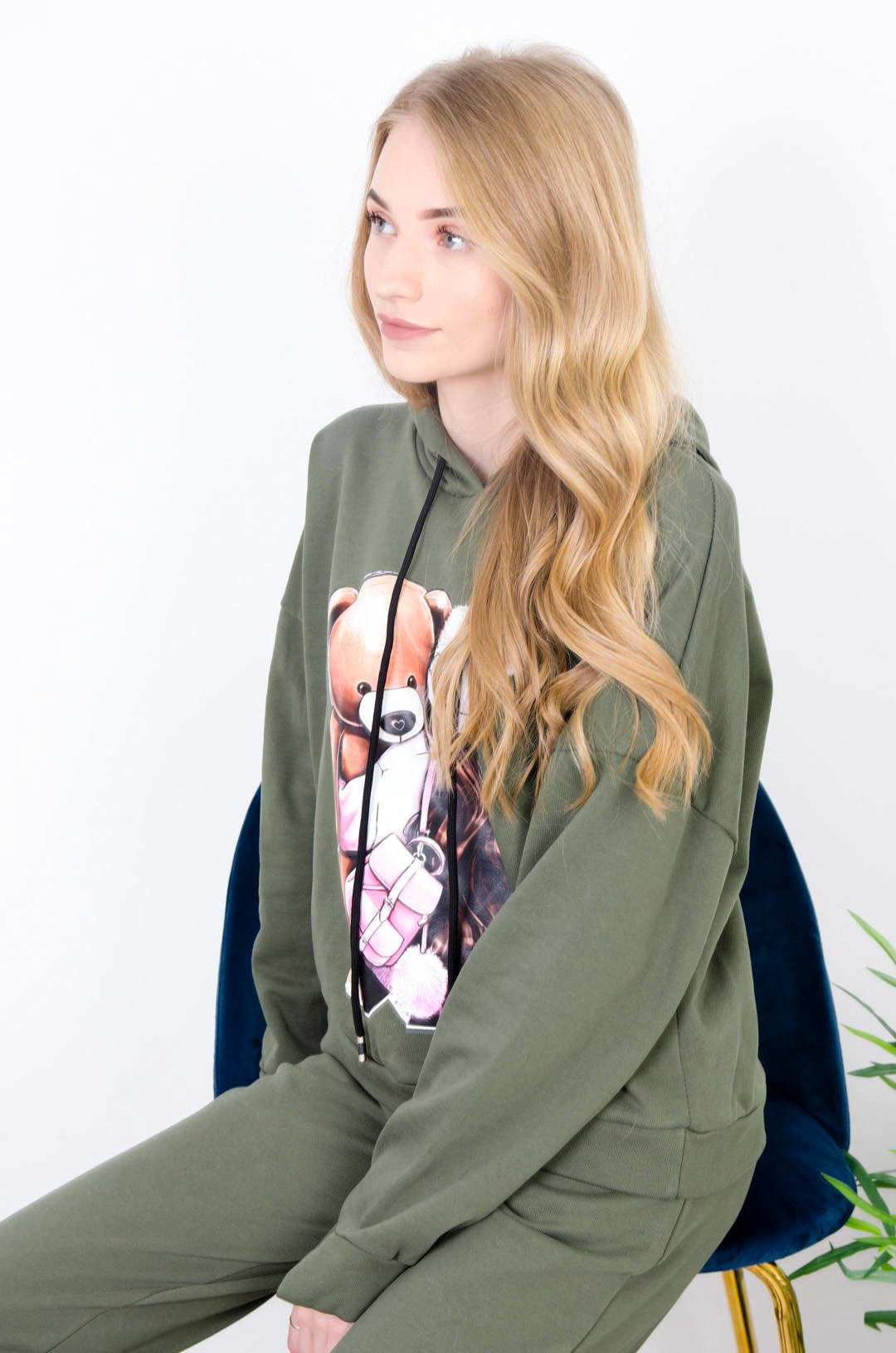 ZIELONY KOMPLET DRESOWY BLUZA + SPODNIE O LUŹNYM KROJU