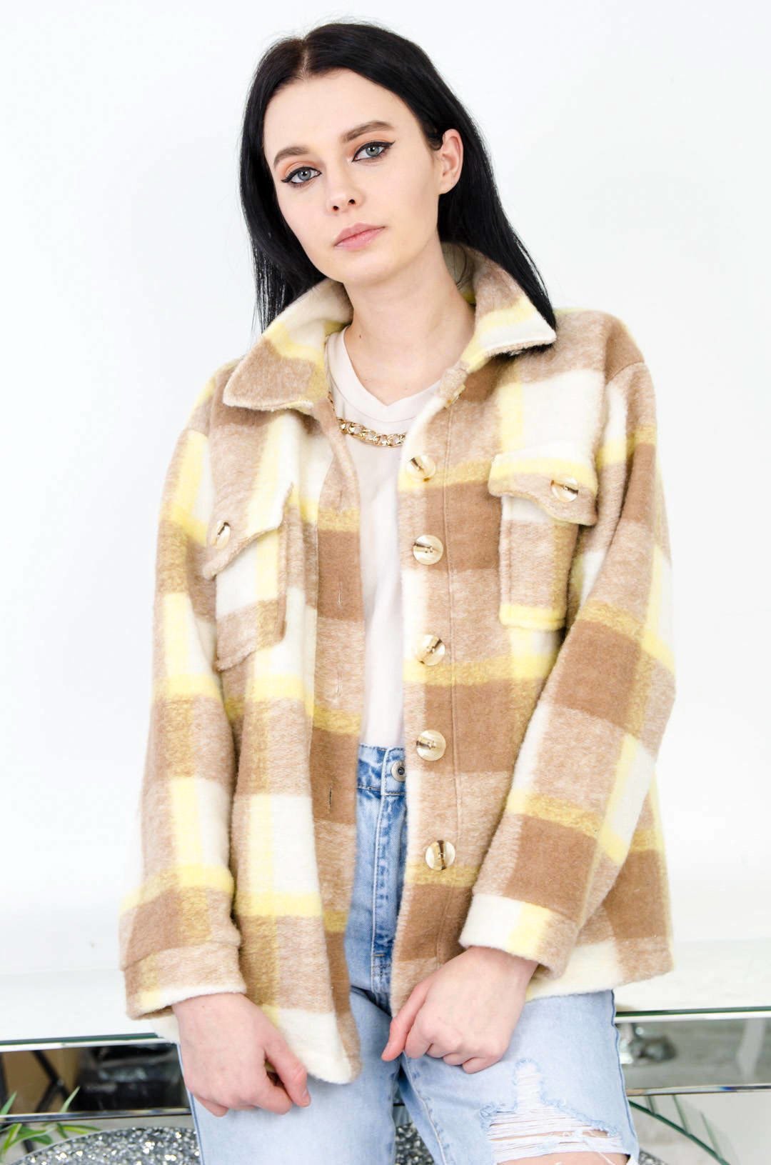 ŻÓŁTY PŁASZCZ KOSZULA W KRATĘ