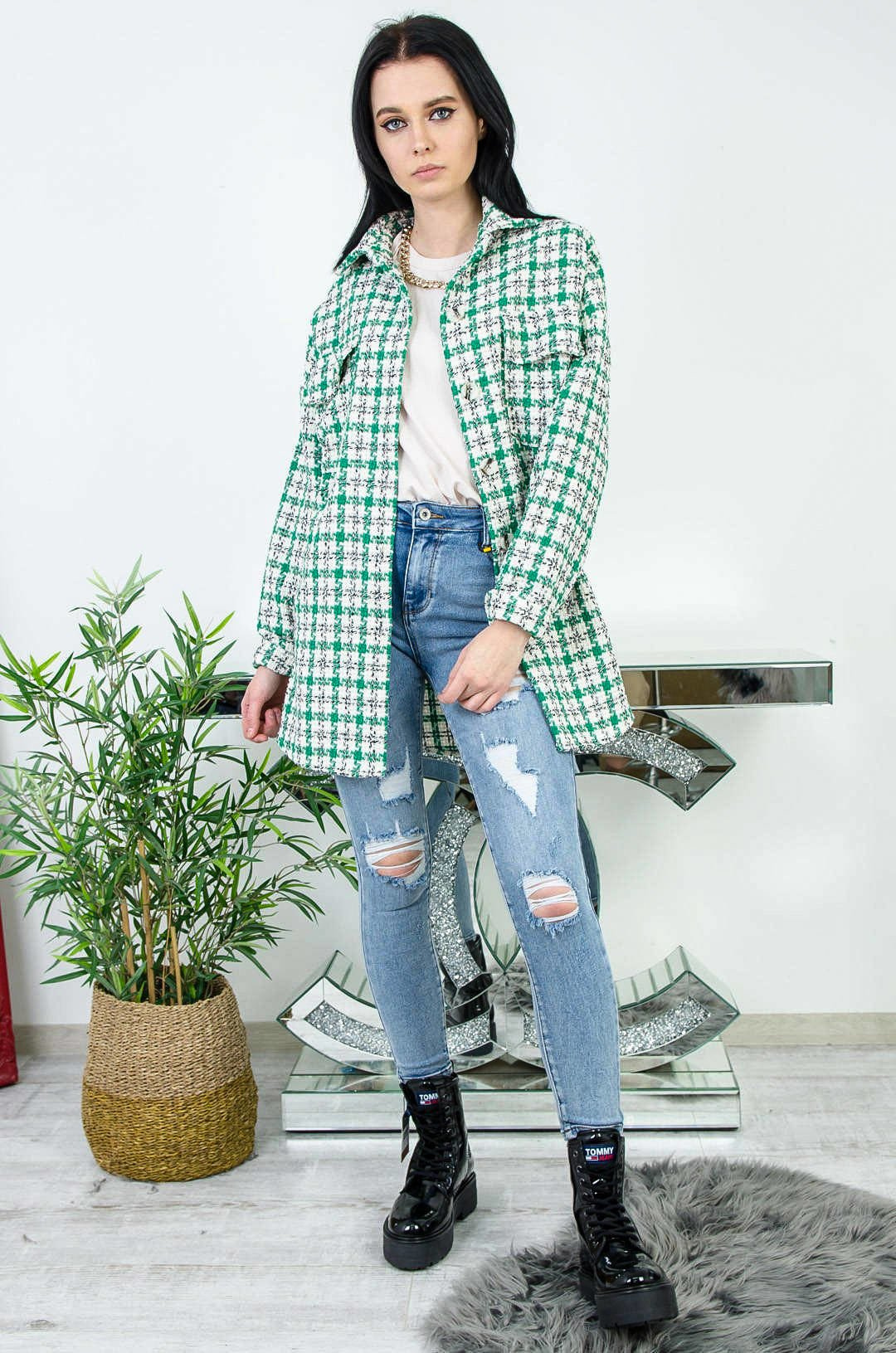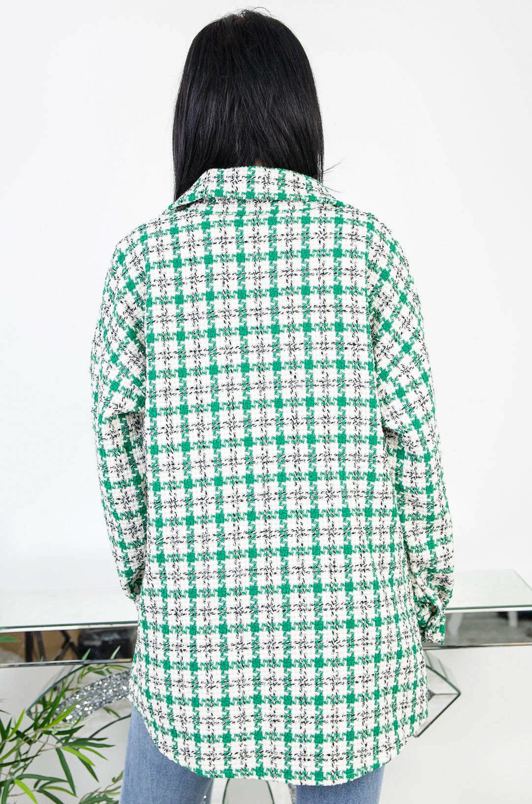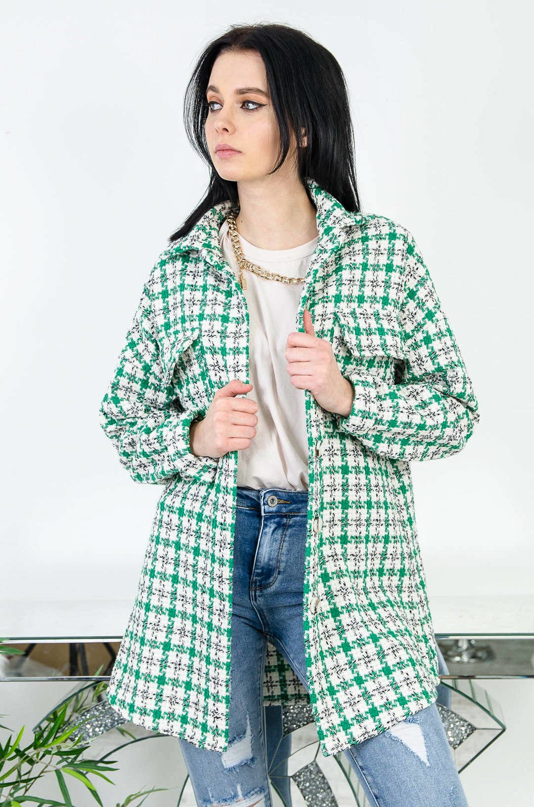 NARZUTA KOSZULOWA W BIAŁO-ZIELONĄ PEPITKĘ