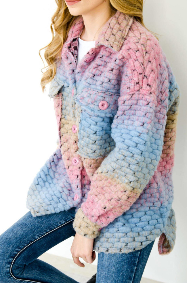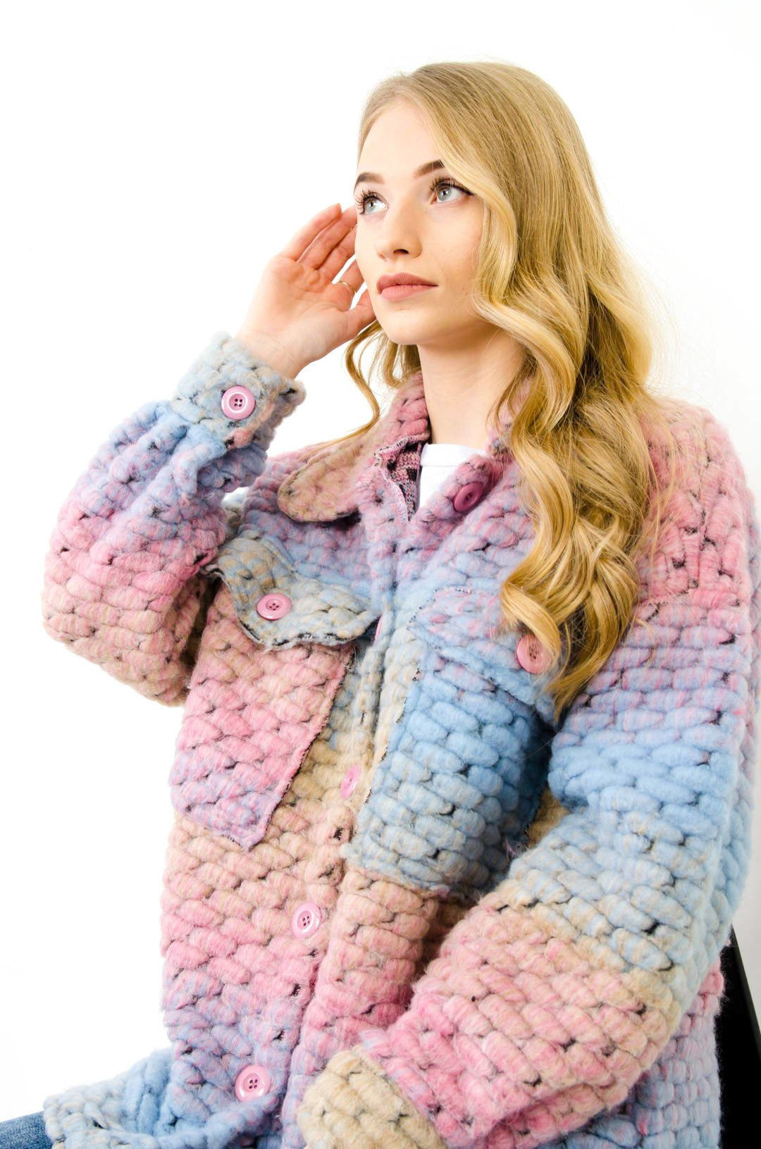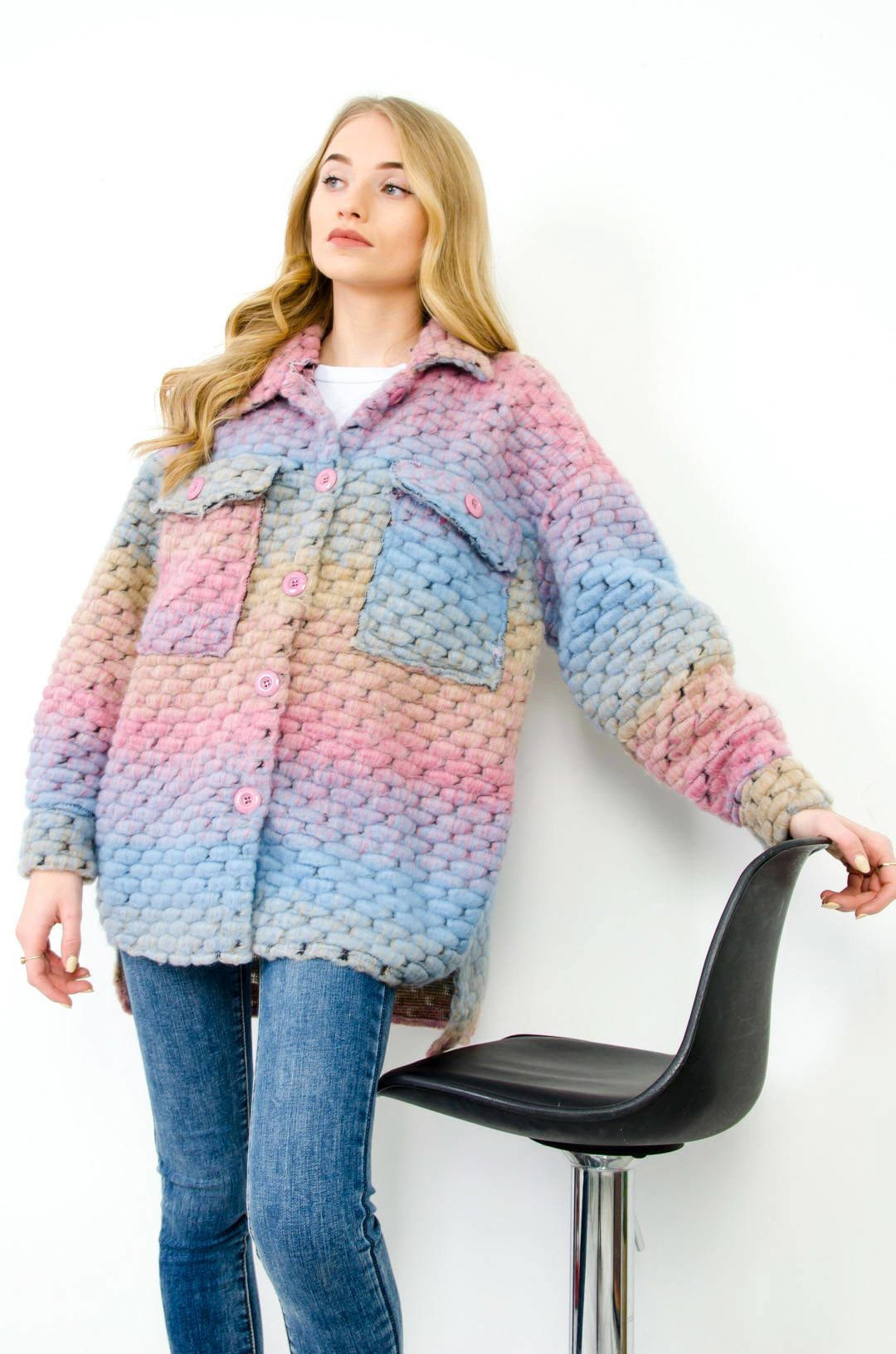 WIOSENNY PŁASZCZYK MULTIKOLOR - NIEBIESKO-RÓŻOWY