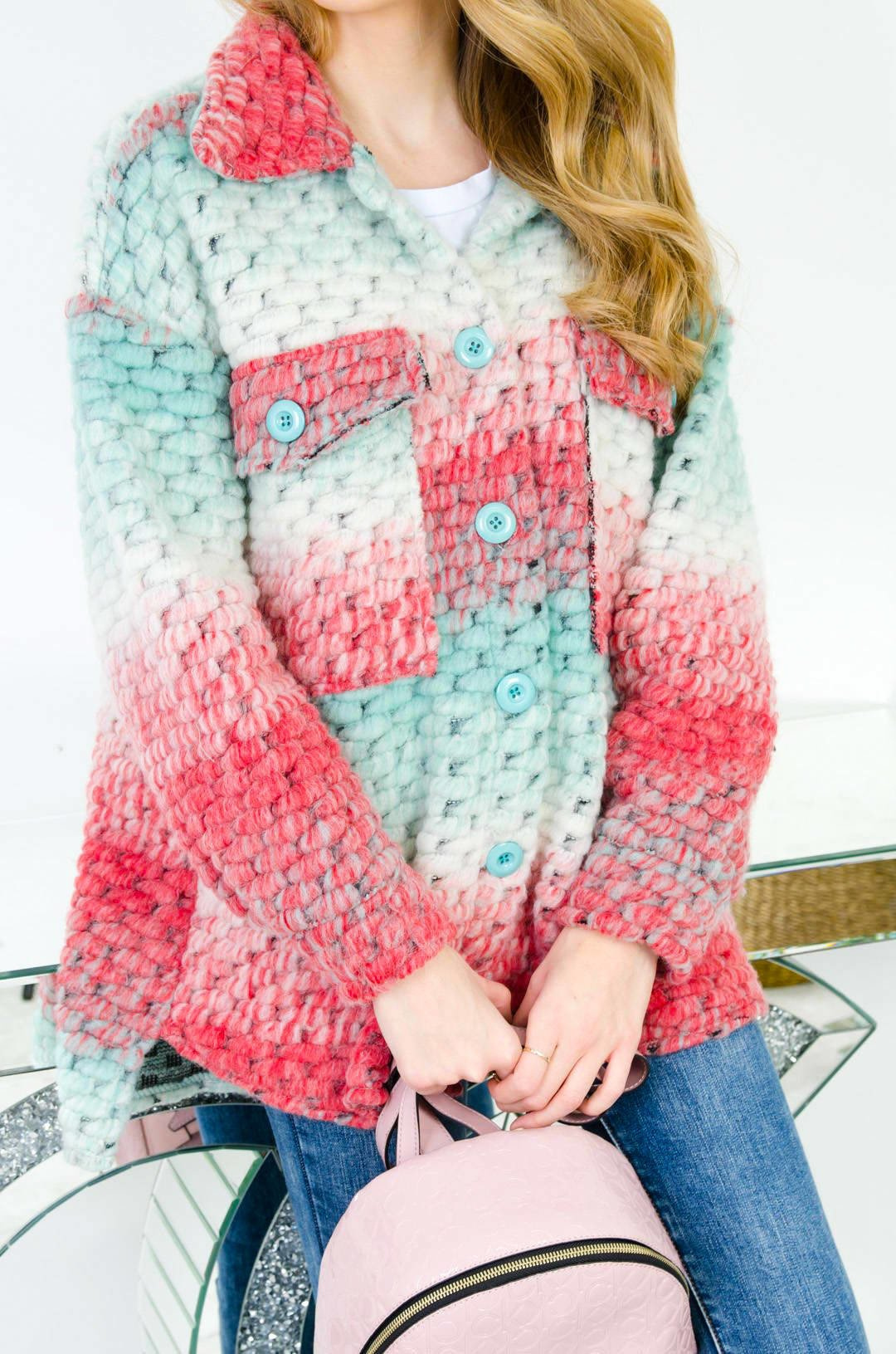 WIOSENNY PŁASZCZYK MULTIKOLOR - NIEBIESKO-RÓŻOWY