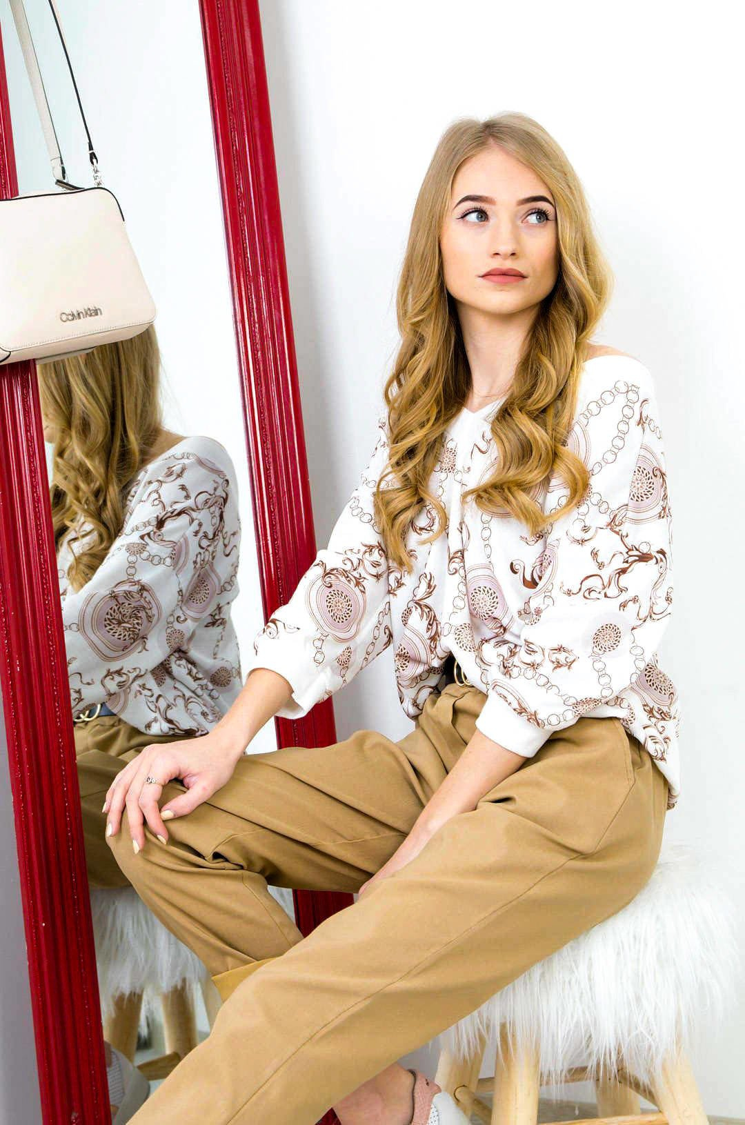 BIAŁA WZORZYSTA BLUZKA W SZPIC
