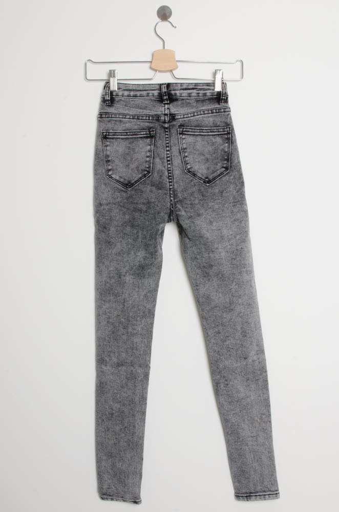 SZARE SPODNIE JEANSOWE Z GUZIKAMI - WYSOKI STAN
