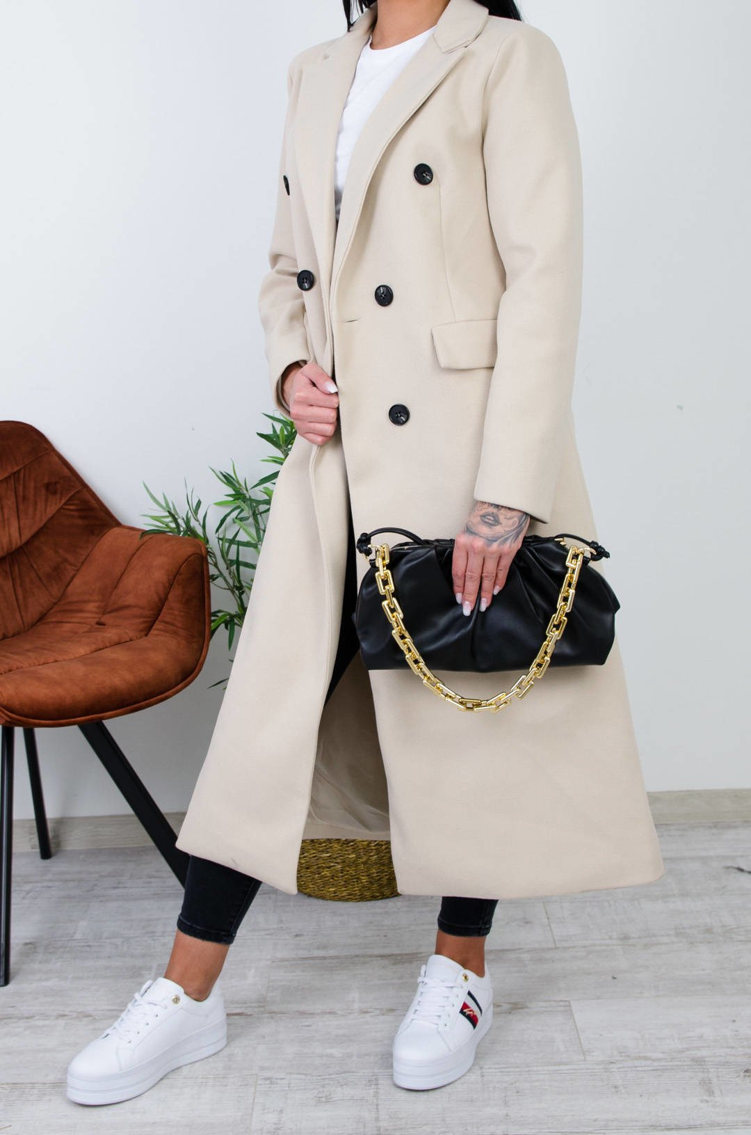BEŻOWY DŁUGI PŁASZCZ