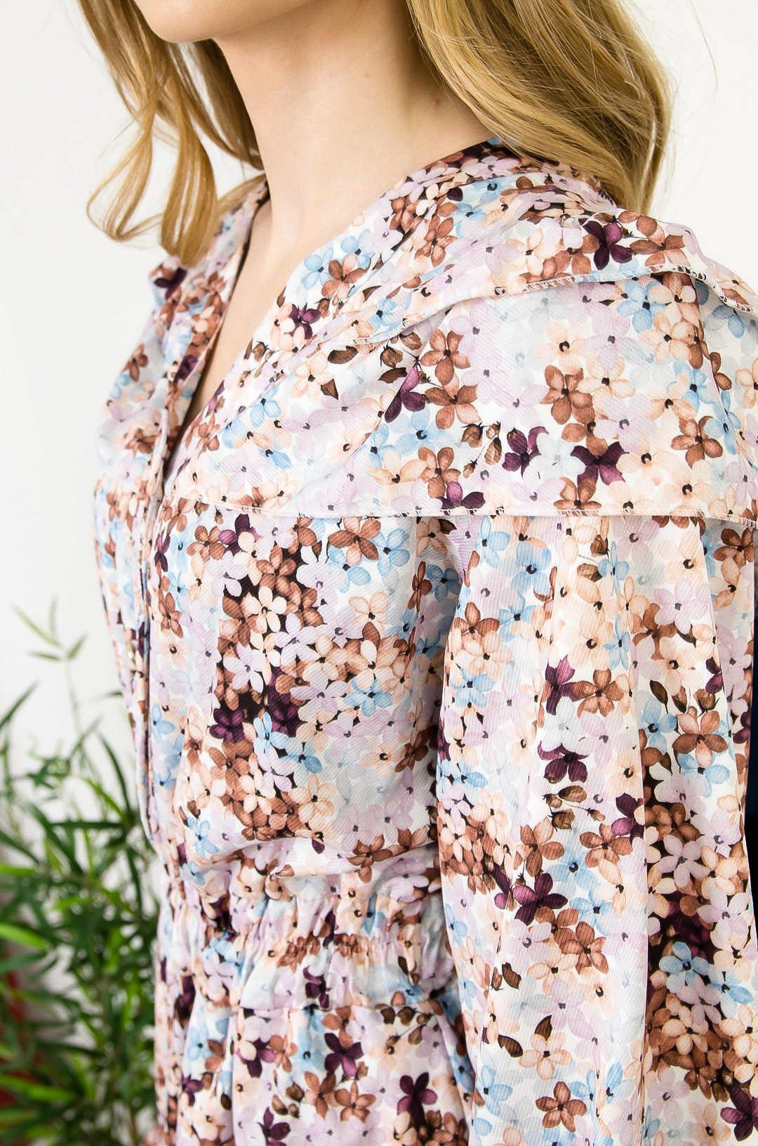 KWIECISTA SUKIENKA Z FALBANAMI ORAZ GUMKĄ W PASIE