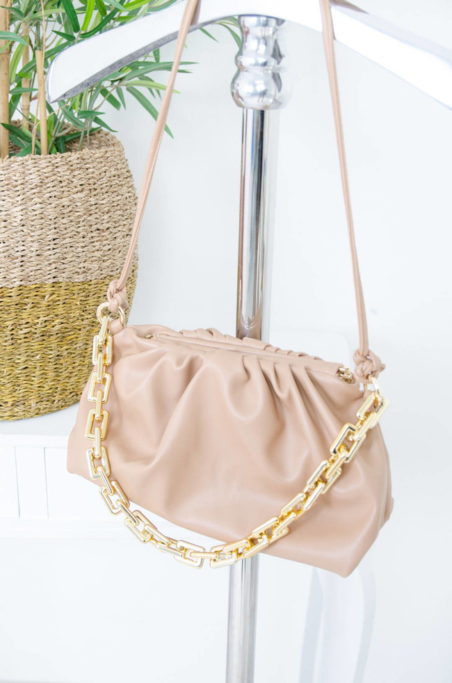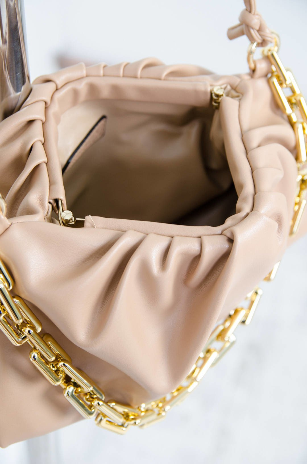 BEŻOWA KOKTAJLOWA TOREBKA ZE ZŁOTYM ŁAŃCUSZKIEM