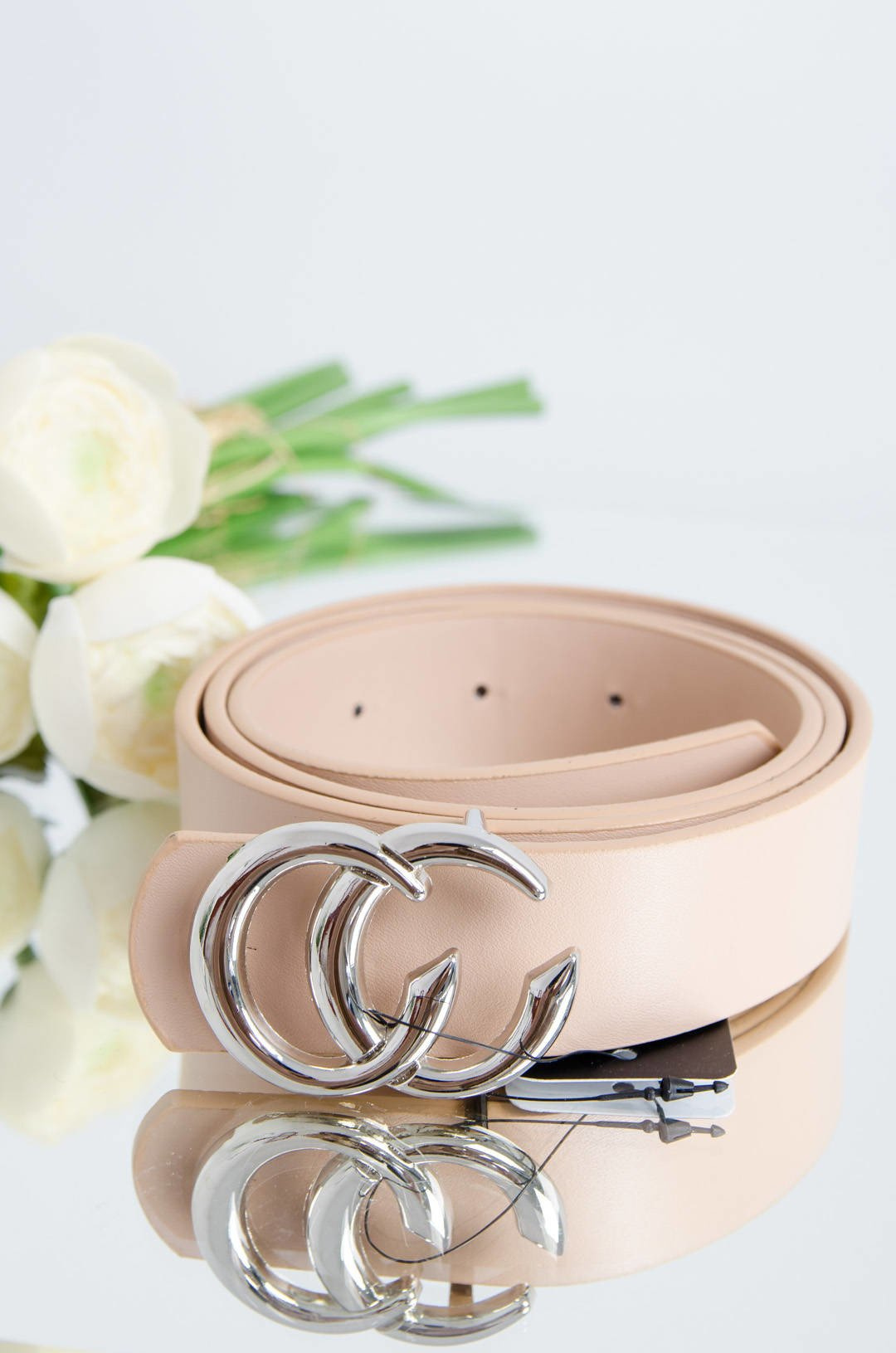 BEŻOWY PASEK ZE SREBRNĄ KLAMRĄ