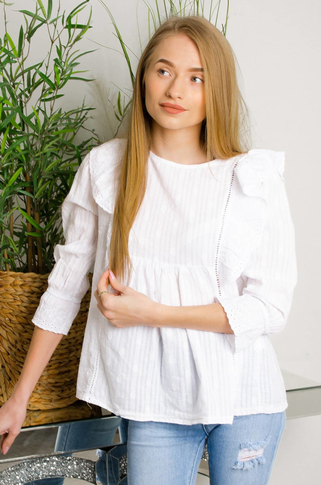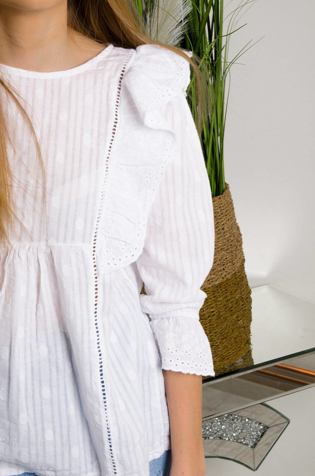 BIAŁA BLZUKA Z AŻUROWYMI WSTAWKAMI