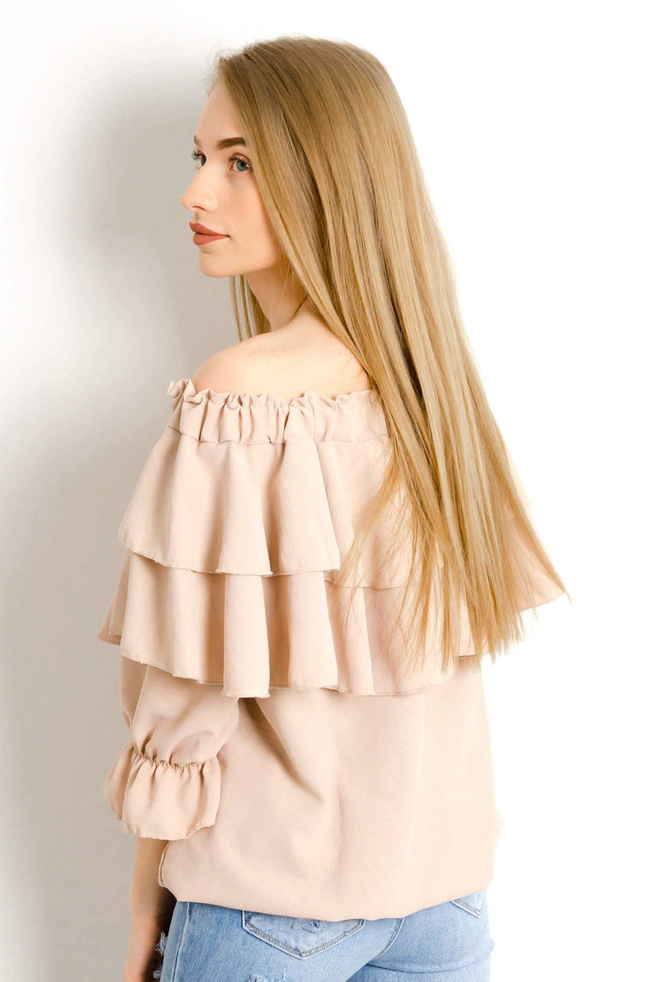 BEŻOWA BLUZKA HISZPANKA Z WIĄZANIEM W DEKOLCIE