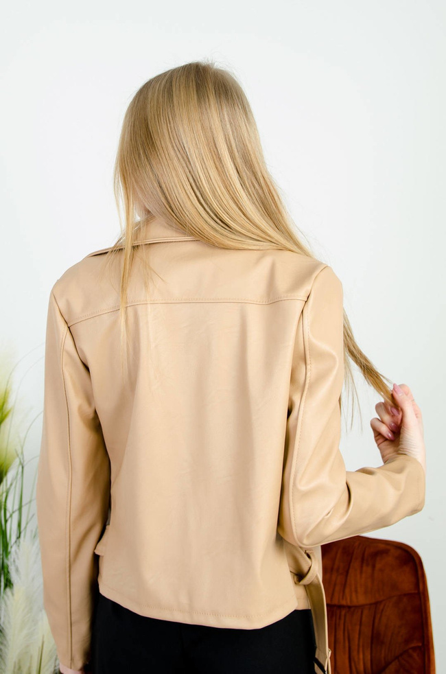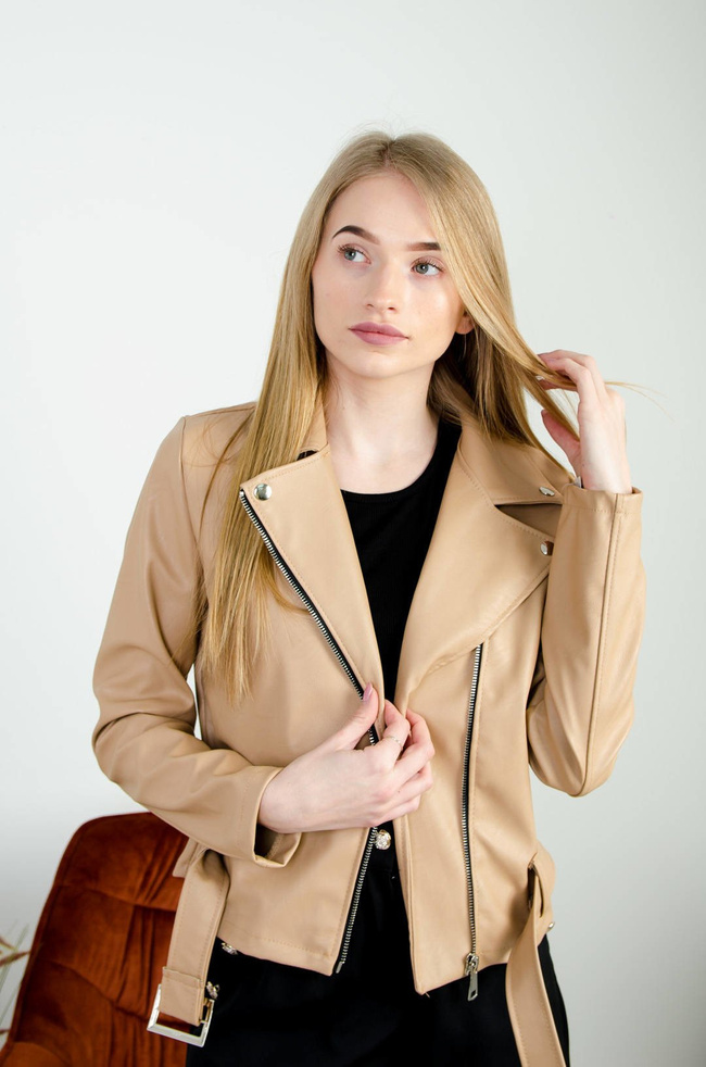 BEŻOWA RAMONESKA Z EKO SKÓRY Z PASKIEM