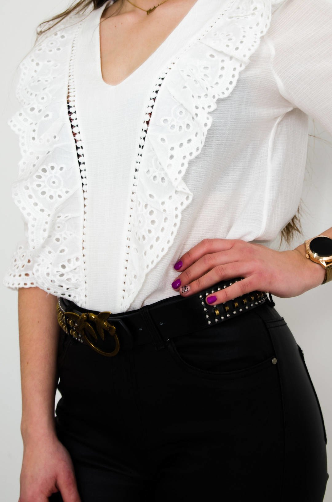 BIAŁA BLUZKA W SZPIC Z HAFTEM