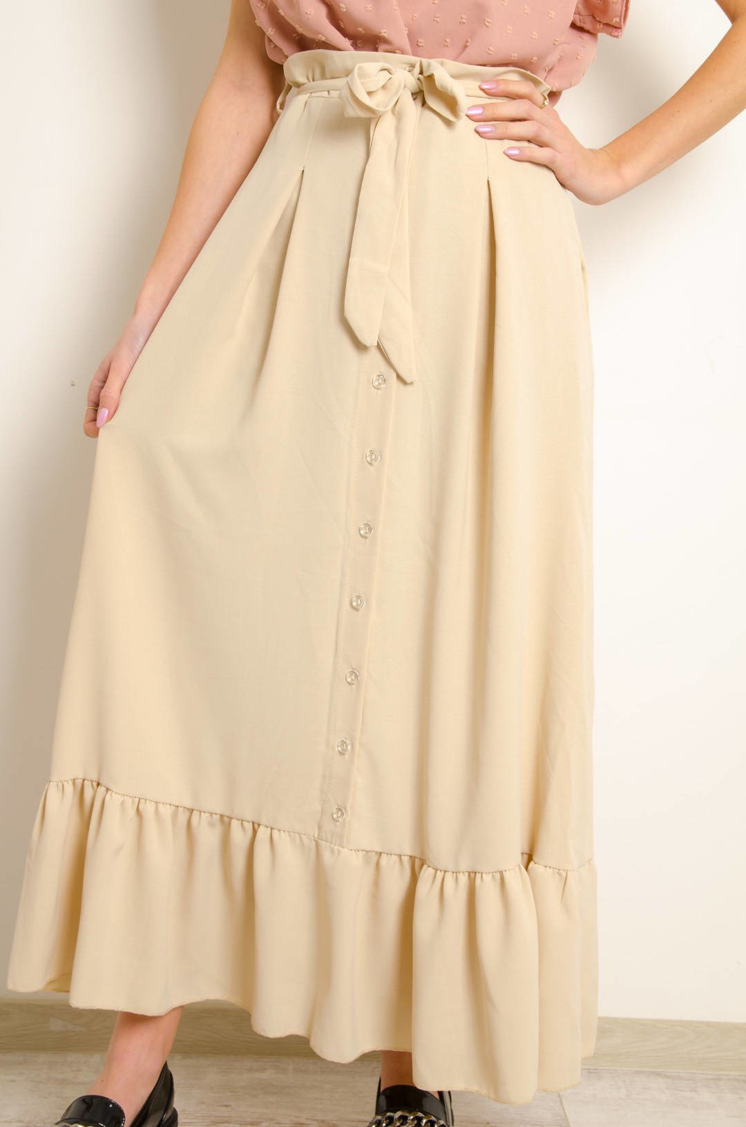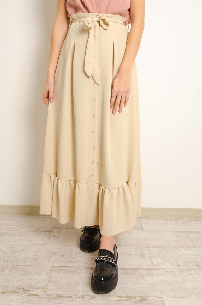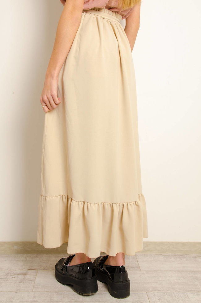 BEŻOWA MAXI SPÓDNICA Z FALBANĄ NA DOLE,