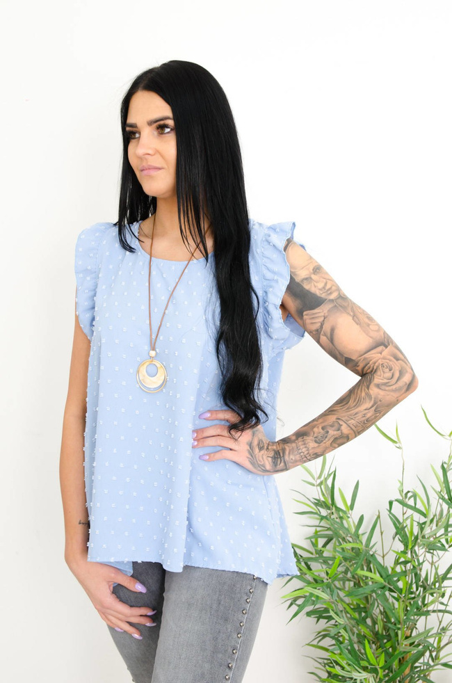 NIEBIESKA BLUZKA Z PLUMETI -WISIOREK W ZESTAWIE.