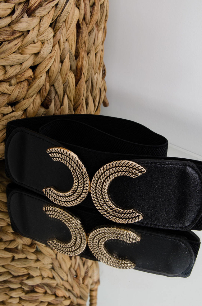 CZARNY PASEK NA GUMIE-ZŁOTE PLECIONE ZAPIĘCIE