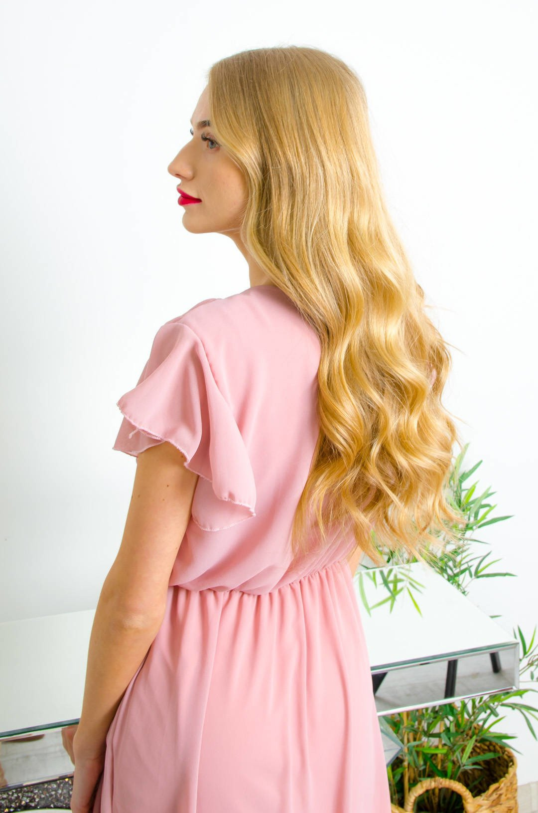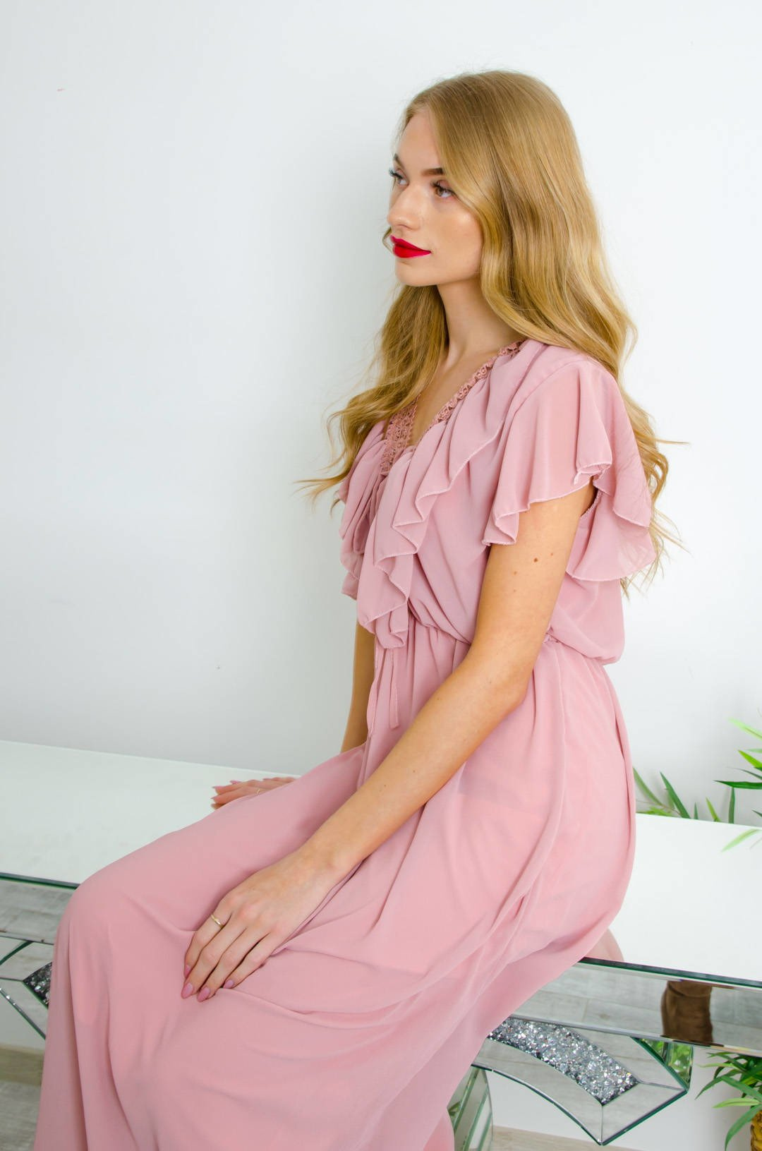 DŁUGA ELEGANCKA SUKIENKA MAXI Z ŻABOTEM - BRUDNY RÓŻ