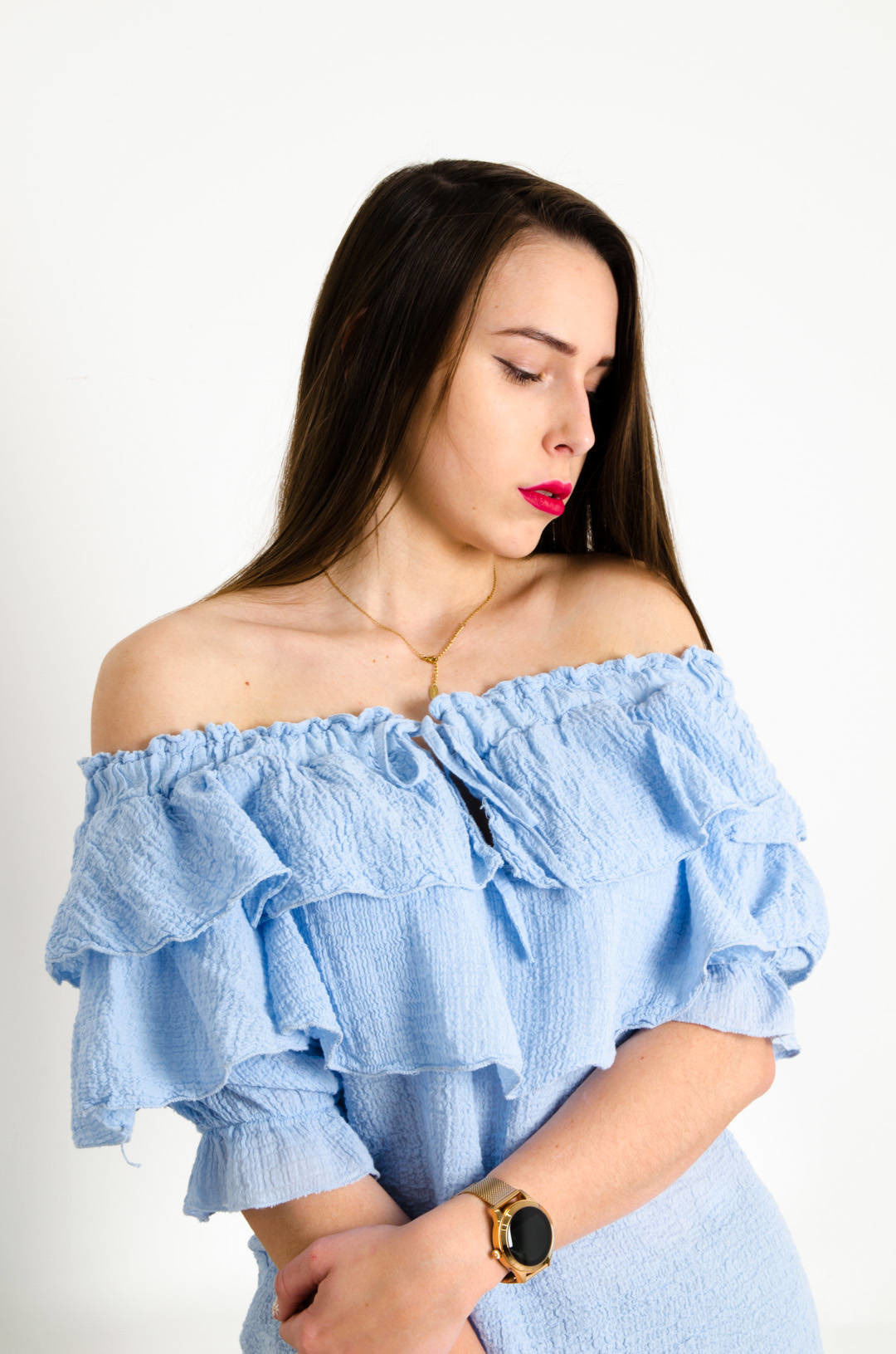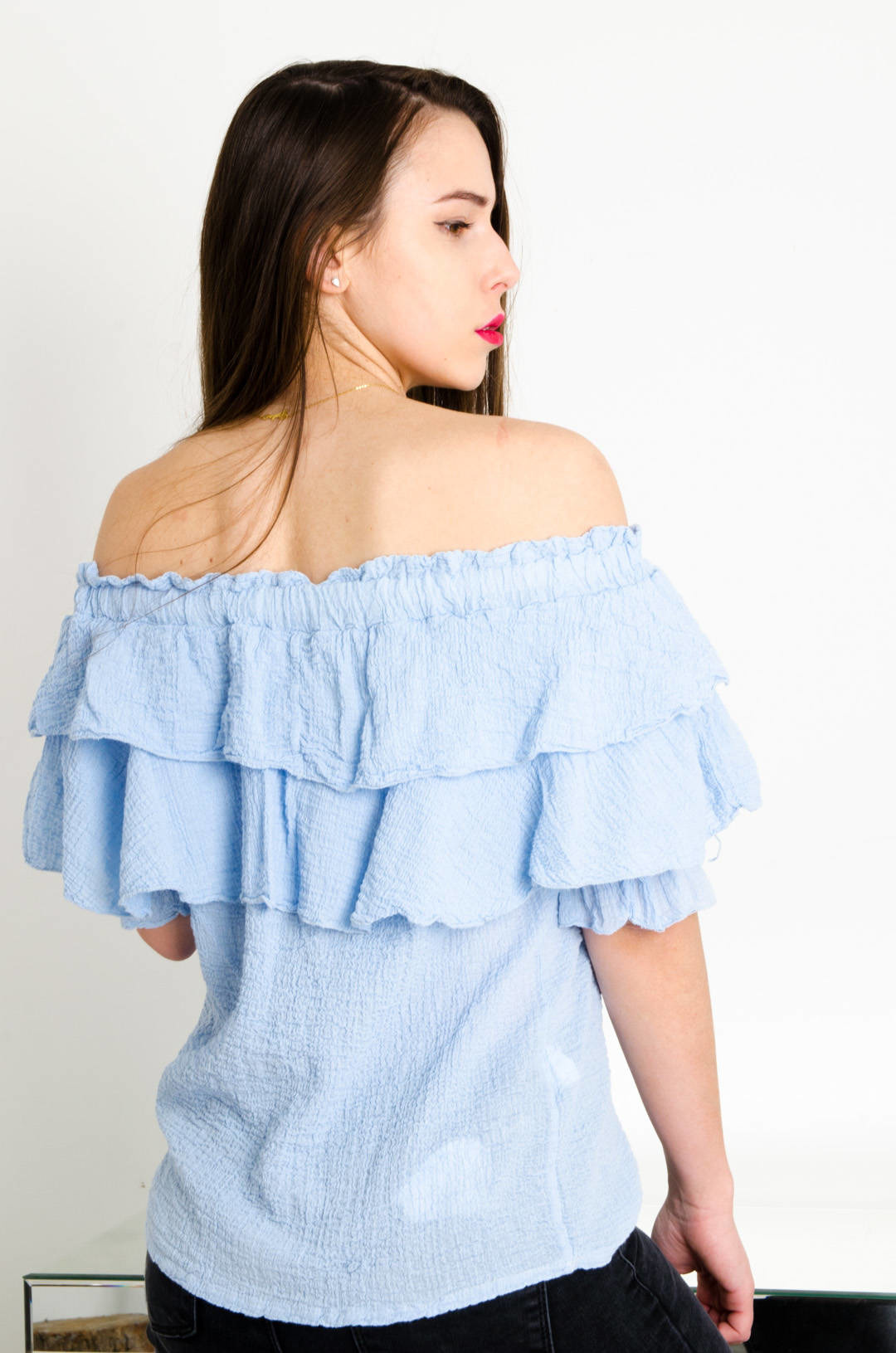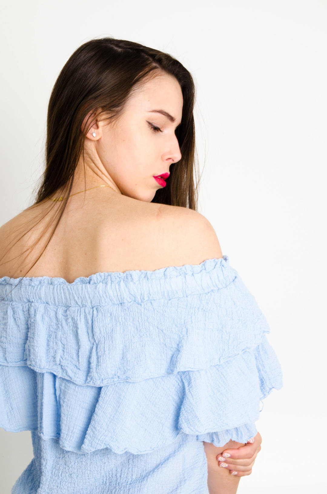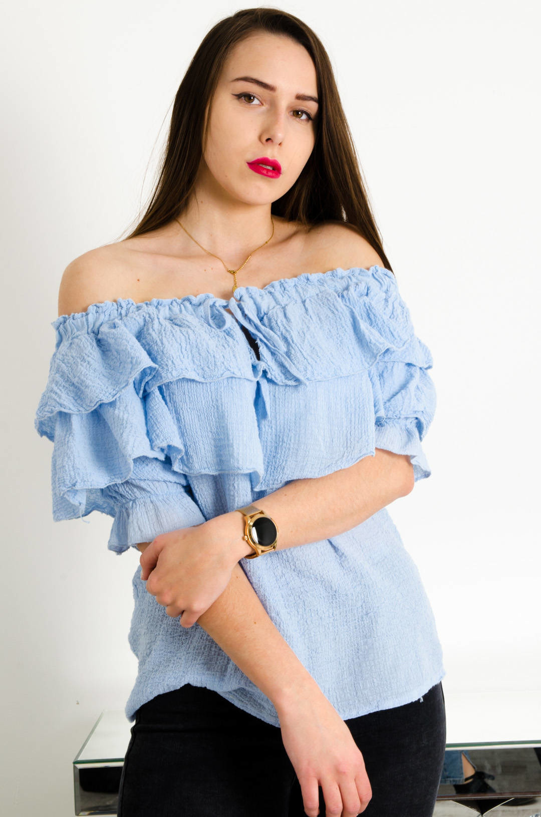 NIEBIESKA MUŚLINOWA BLUZKA HISZPANKA