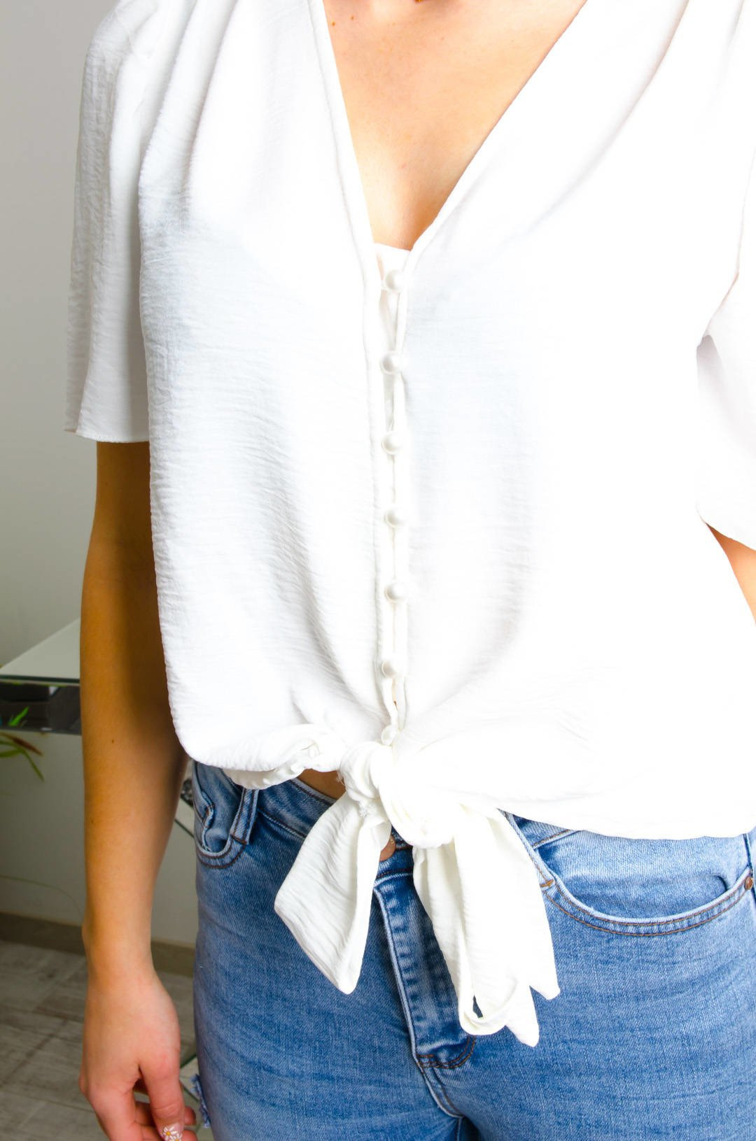 BIAŁA BLUZKA ZAPINANA NA GUZIKI Z WIĄZANIEM NA DOLE