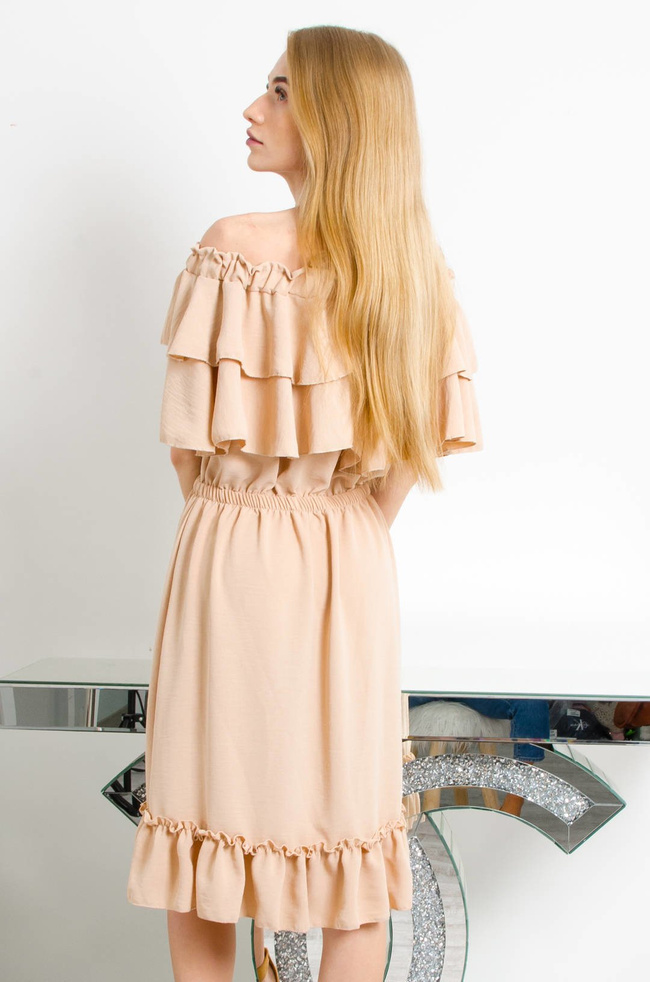 BEŻOWA SUKIENKA HISZPANKA Z FALBANKĄ