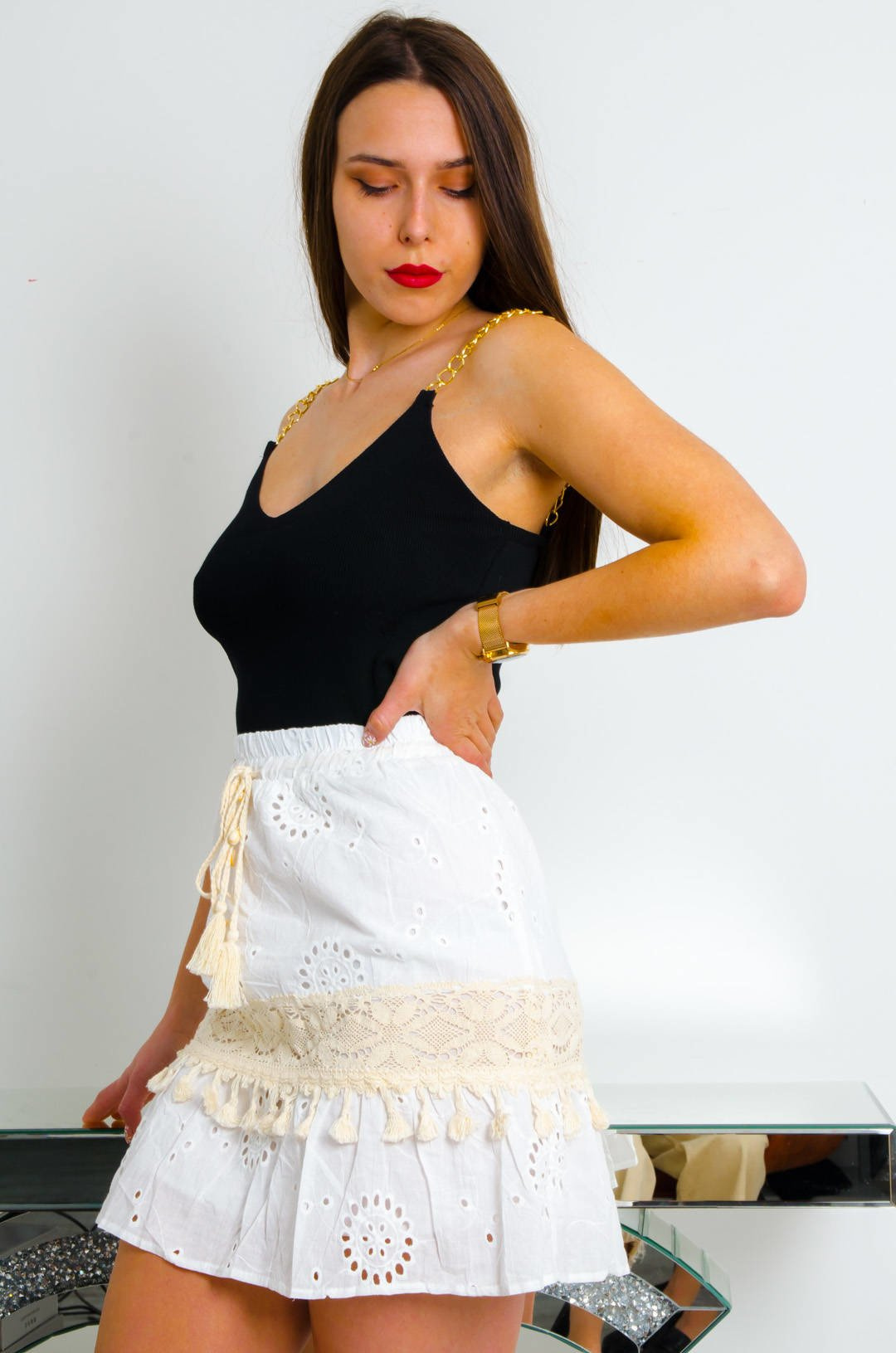 BIAŁA AŻUROWA SPÓDNICA W STYLU BOHO