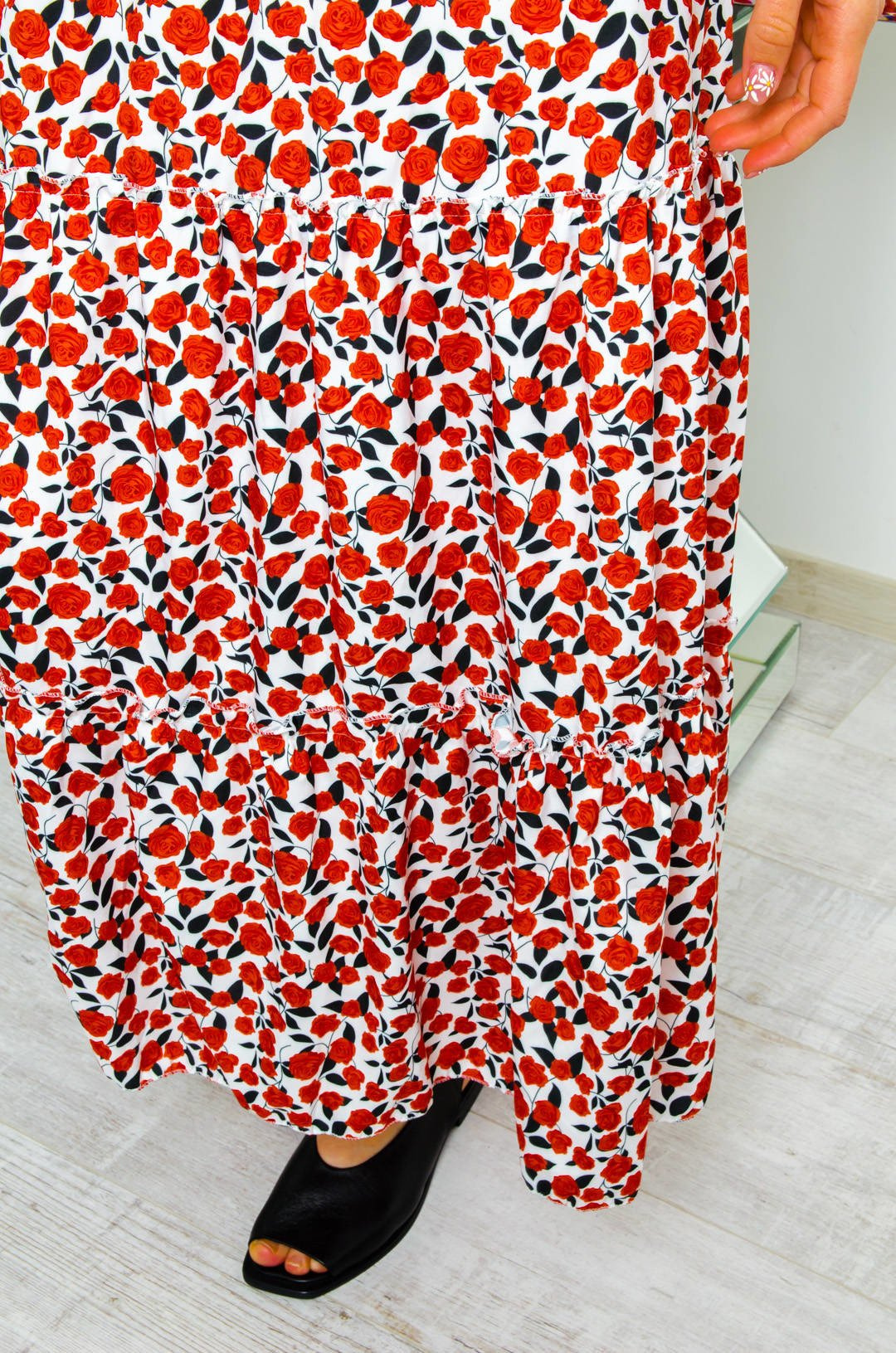 DŁUGA BIAŁO CZERWONA SPÓDNICA MAXI W KWIATY