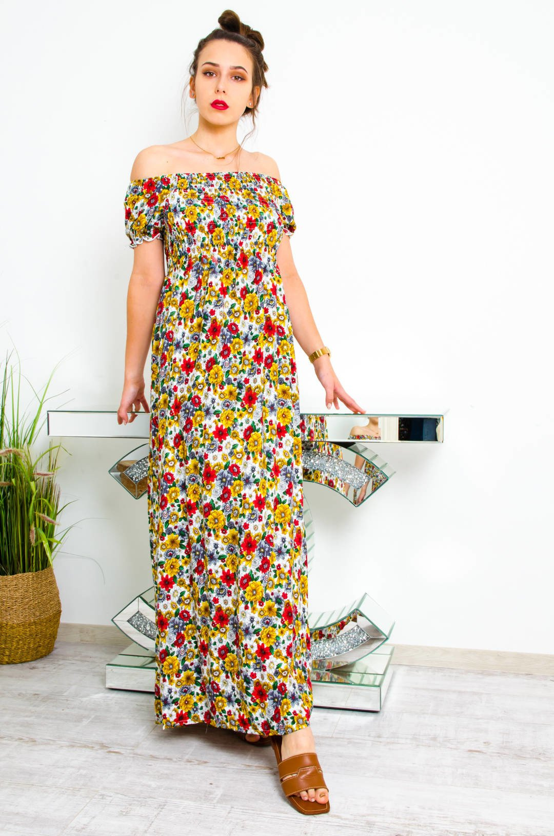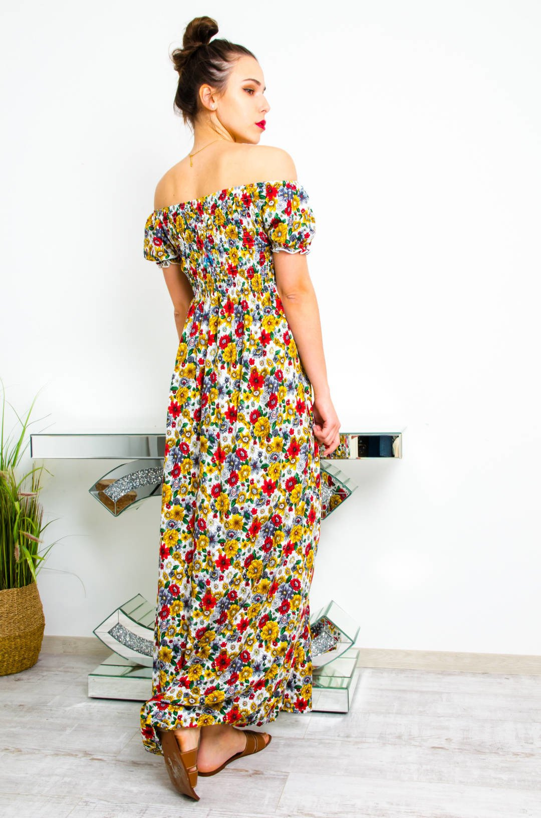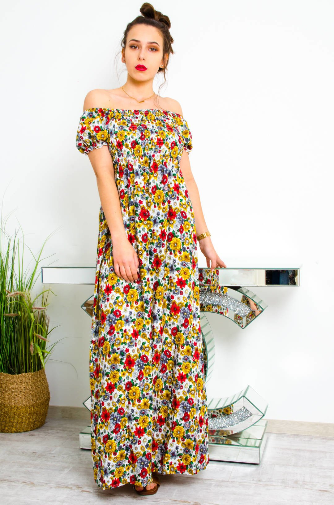 BIAŁA DŁUGA SUKIENKA HISZPANKA W KWIATY