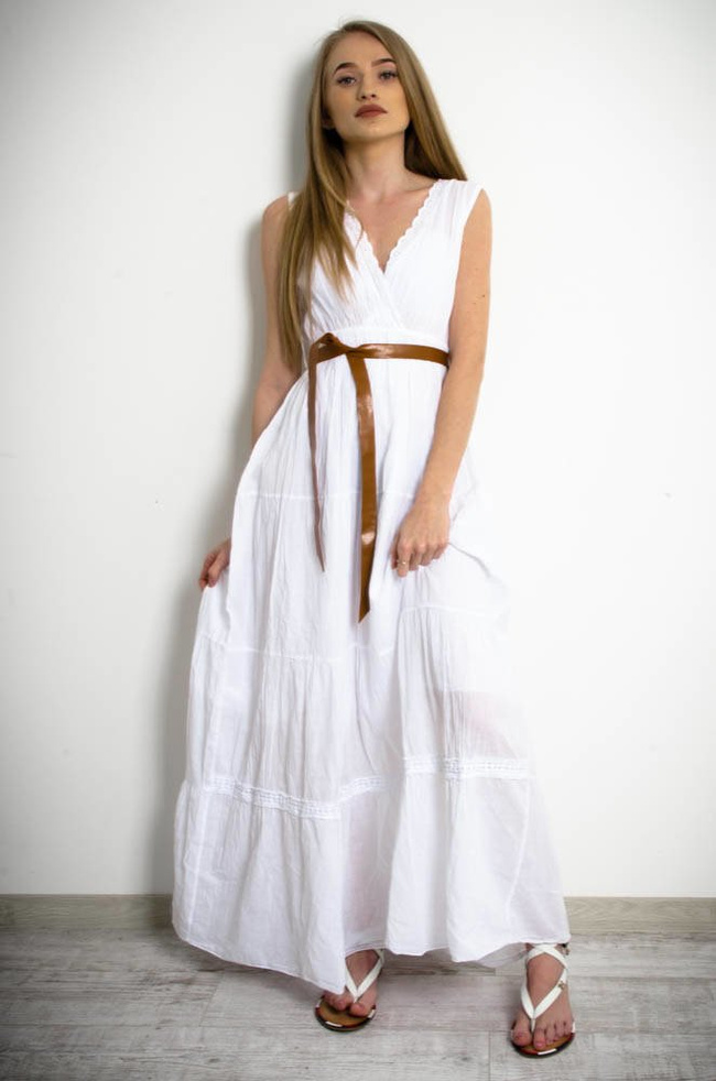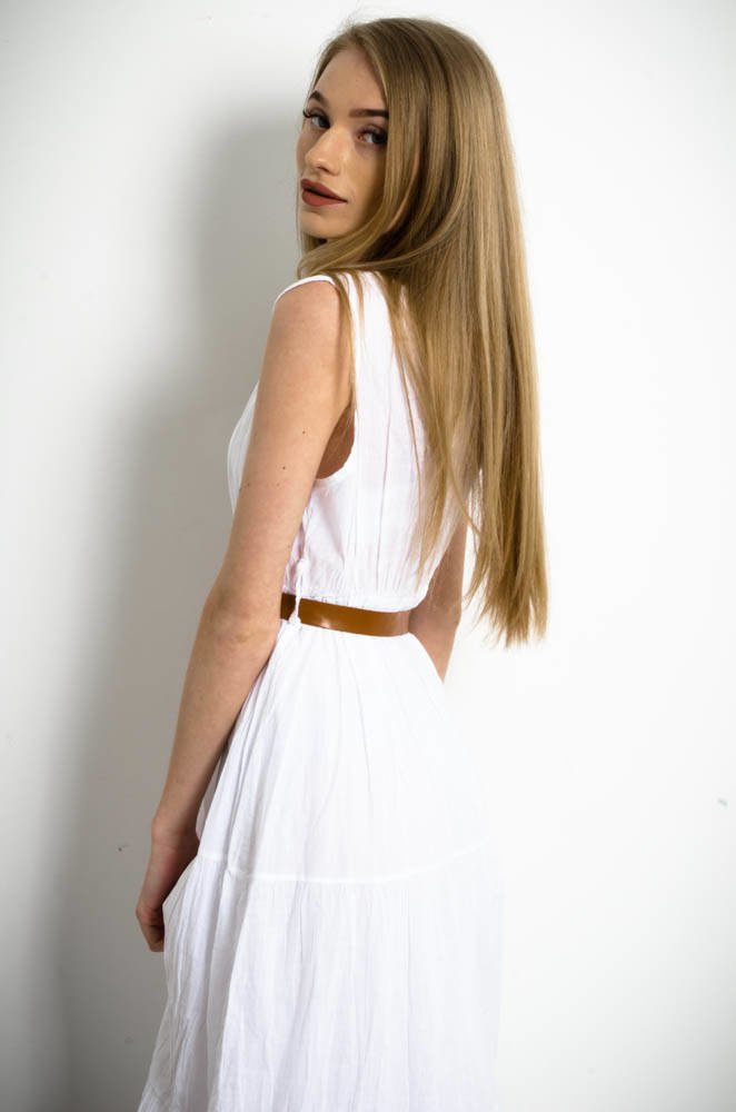 BIAŁA SUKIENKA MAXI -AŻUROWE WSTAWKI
