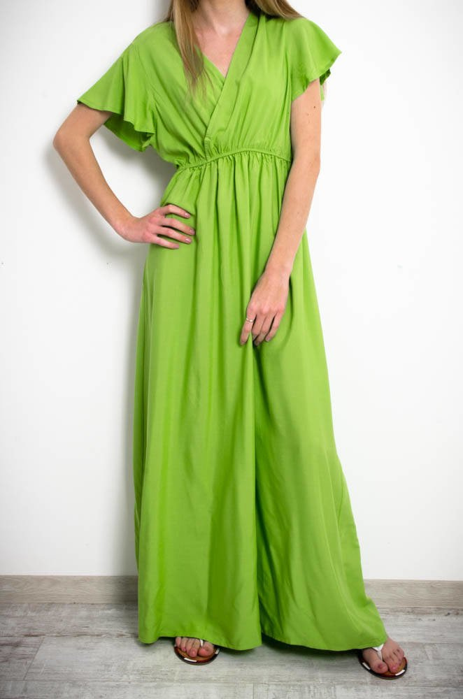 DŁUGA SUKIENKA MAXI Z KOPERTOWYM DEKOLTEM W KOLORZE ZIELONYM