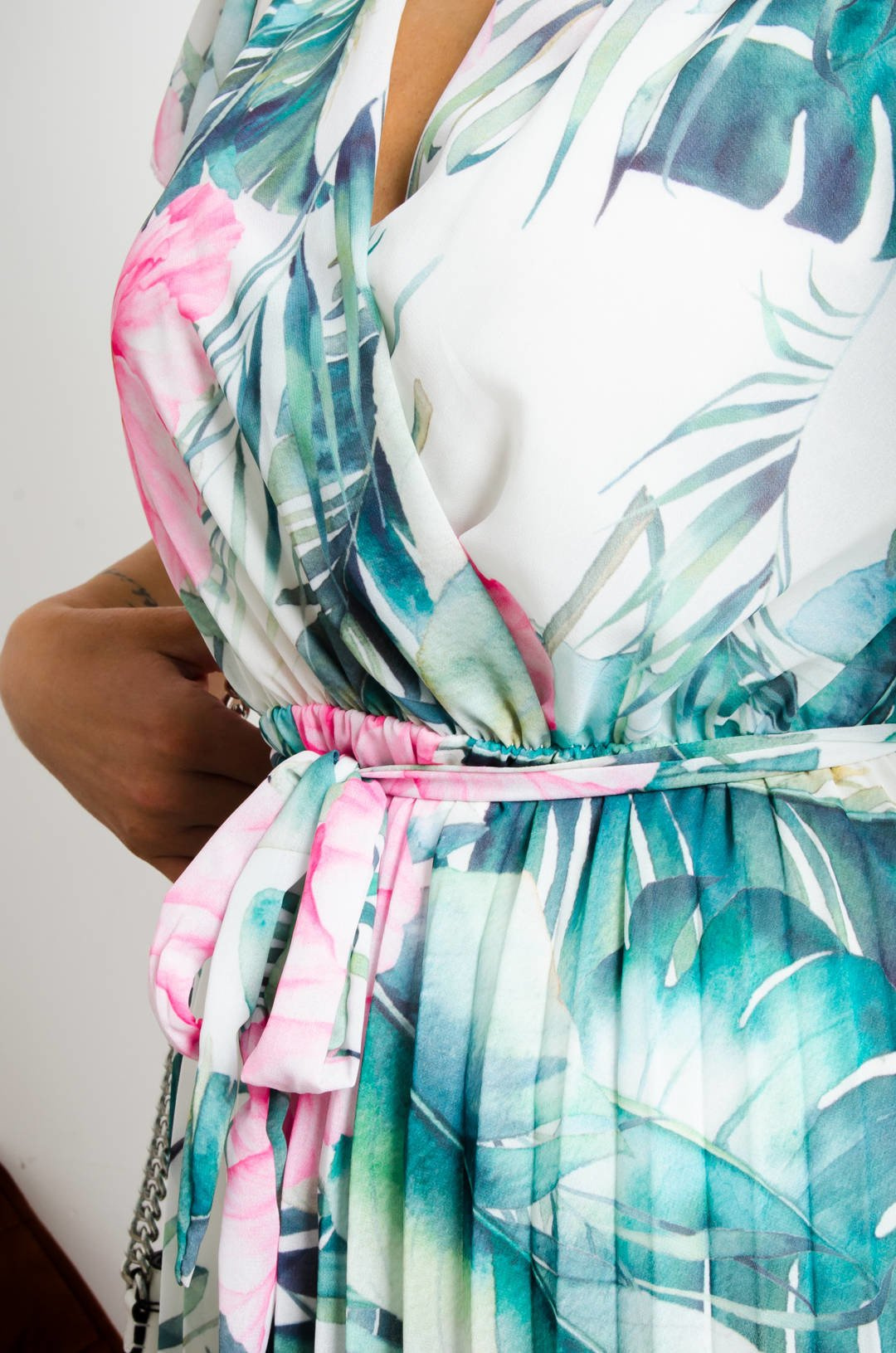 BIAŁA SUKIENKA W ZIELONO-RÓŻOWE KWIATY