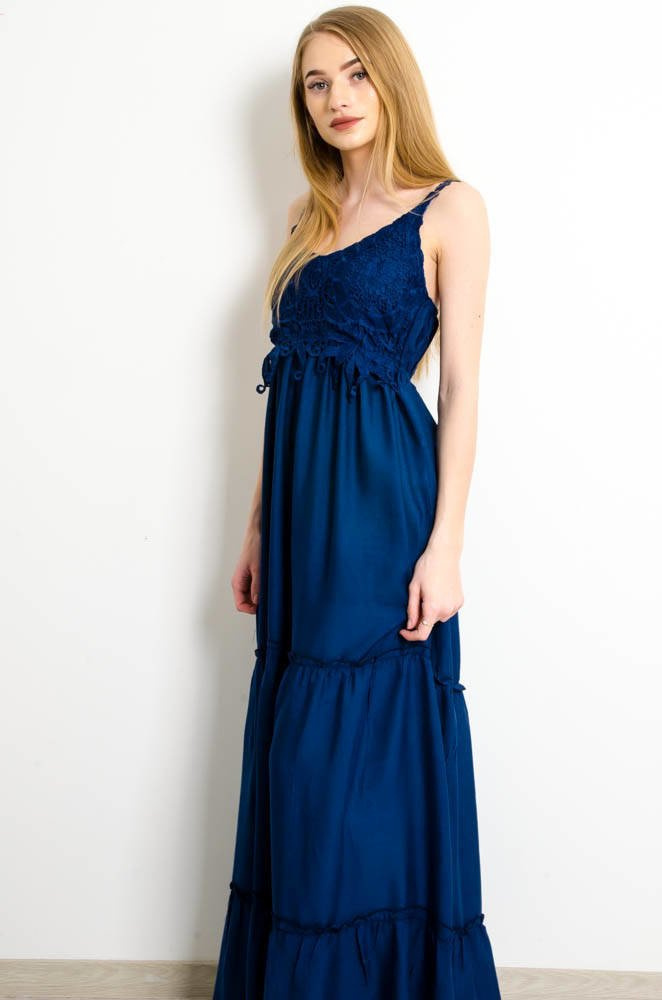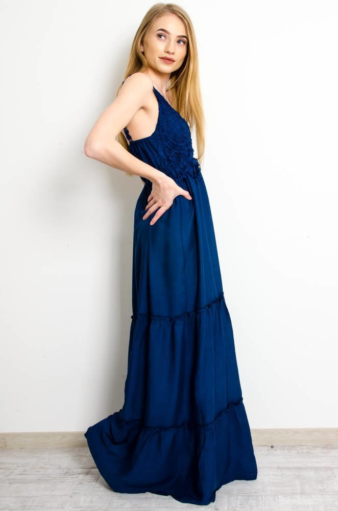 GRANATOWA SUKIENKA MAXI NA RAMIĄCZKACH Z AŻUROWĄ GÓRĄ